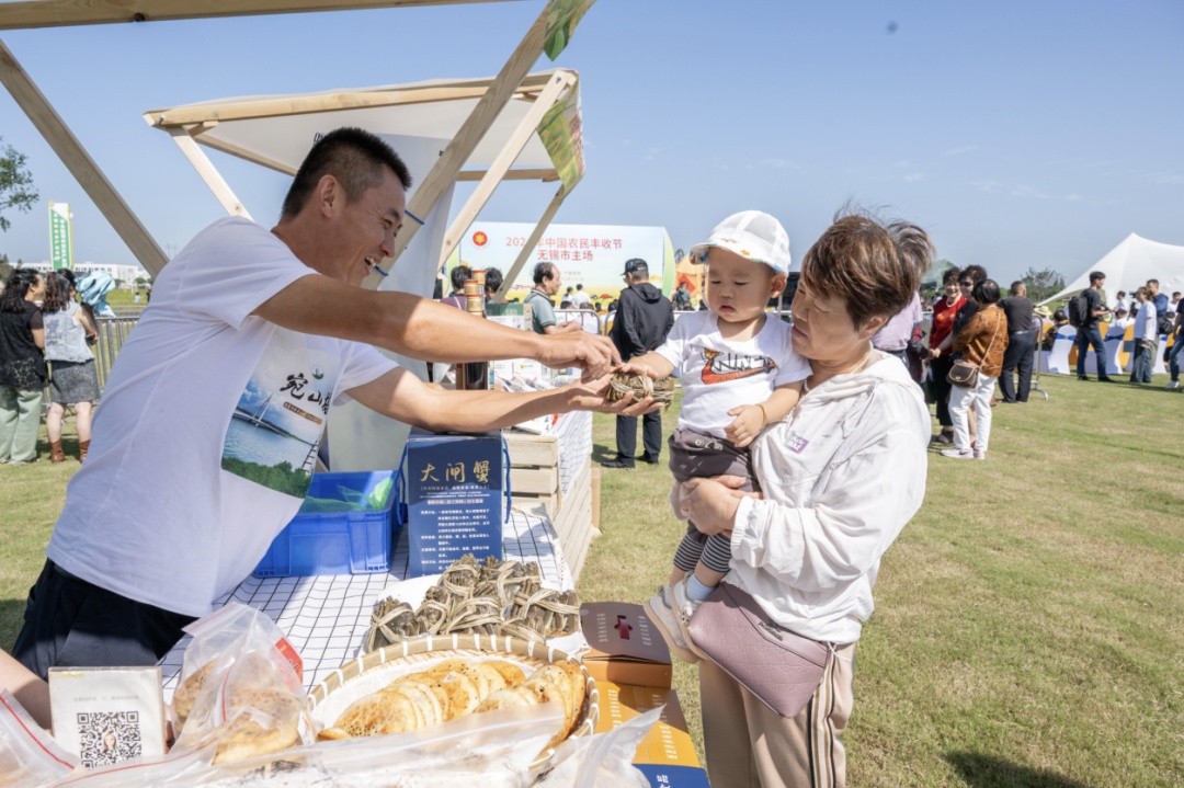 会场外千亩粮田稻花飘香,十里花海分外妖娆。会场内,锡山大米、谢埭荡村鸡头米、斗山白茶、宛山村大闸蟹,羊尖严家桥大米、雪桃、葡萄等特色农产品新鲜上市,大批市民忙着采购“尝鲜”。