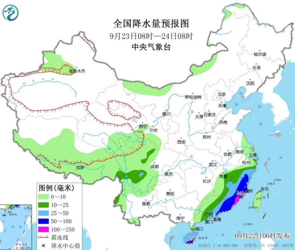 9月24日(周二):阴到多云有阵雨或雷阵雨,23~27℃