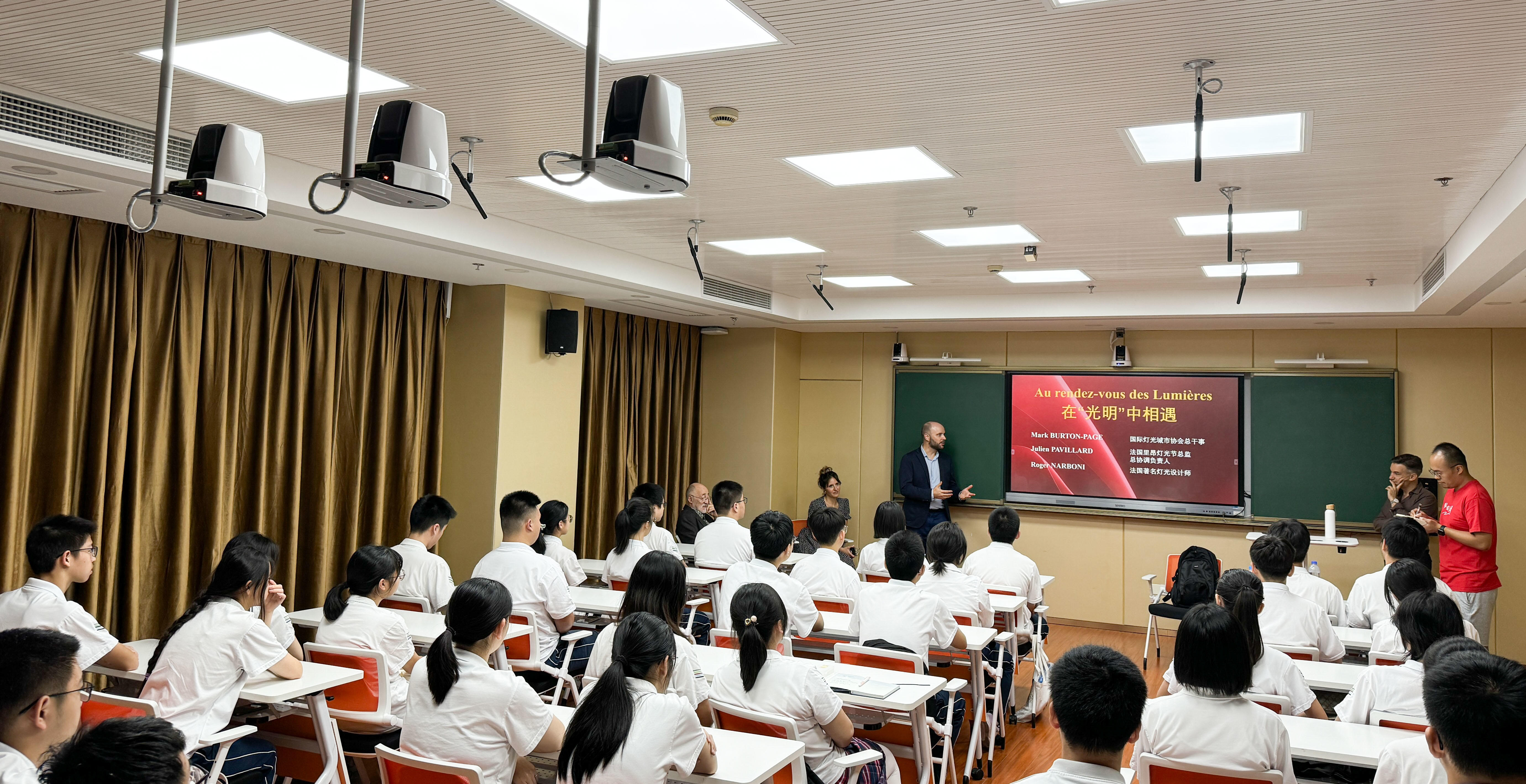 随着备受瞩目的上海国际光影节启幕,作为黄浦区分会场的核心点位——光明中学成为了璀璨光影的焦点,也成为了市民们的热点话题。光影艺术,究竟该传递怎样的文化价值?近日,三位国际光影节嘉宾、法国里昂灯光艺术家,与光明中学的学子们就灯光景观艺术进行了“思维碰撞”,让学子们对光影艺术有了更深层次的理解。