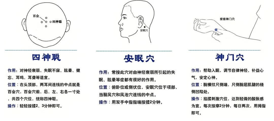 一、针灸理疗基础治疗:失眠症针刺的基础配穴为四神聪,安眠,印堂,神门,内关,三阴交,照海,平补平泻,留针20分钟。辅以辩证拔罐,耳穴敷贴,定向透药,功法导引,从气血论治失眠,以使阴平阳秘,气血调和,改善心脑血管循环。