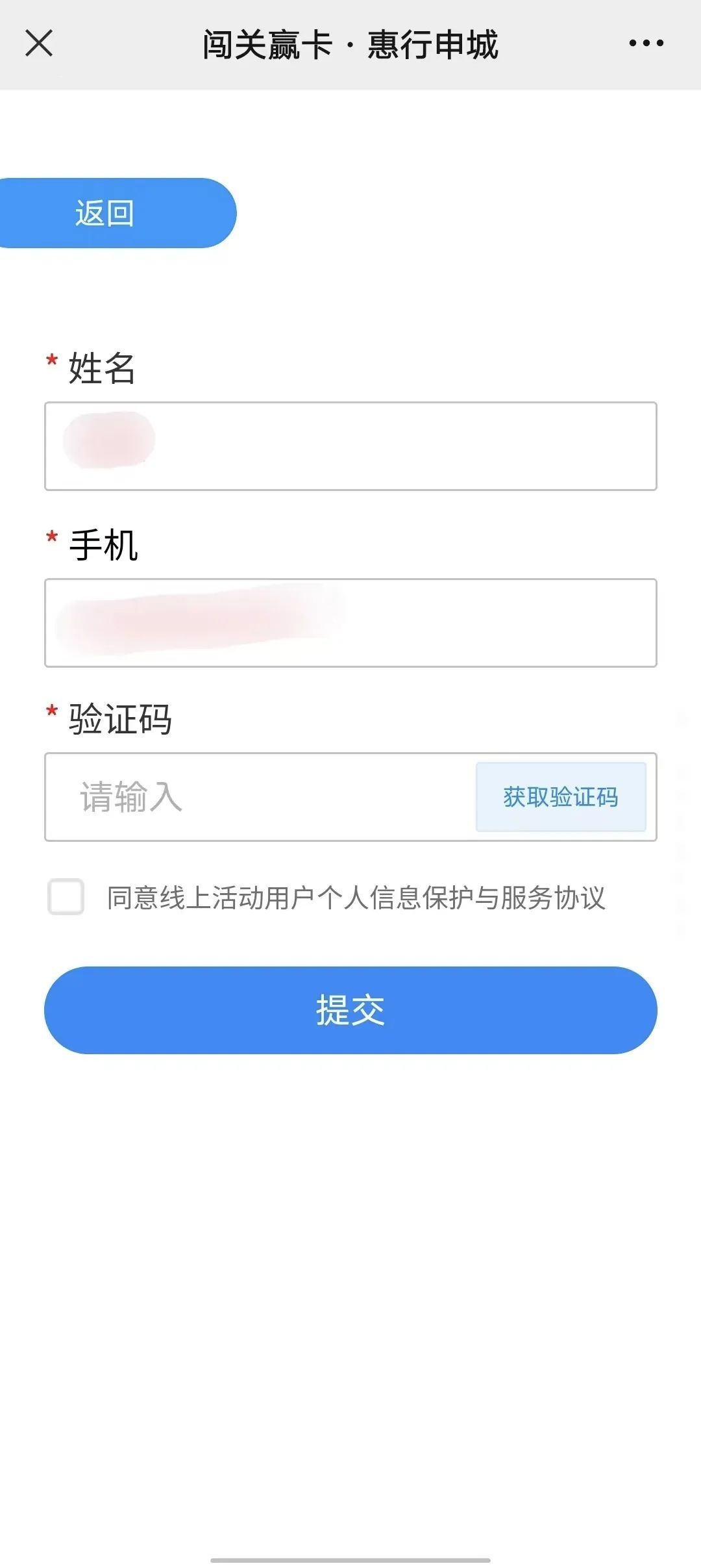 点击首页菜单栏【闯关赢卡】进入“闯关赢卡·惠行申城”活动页面。点击【立即参与】,输入【姓名+银行预留的手机号】,点击【获取验证码】,输入并勾选【同意】,确认【提交】即可在线答题。
