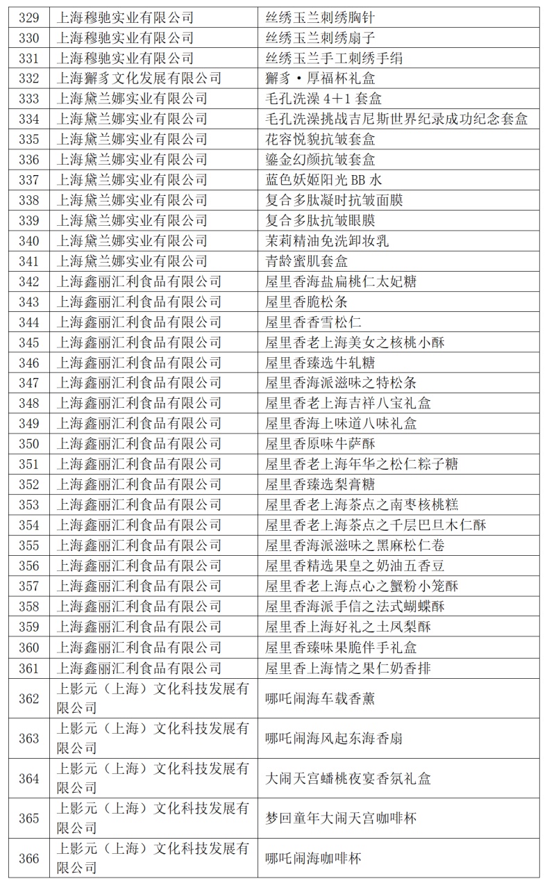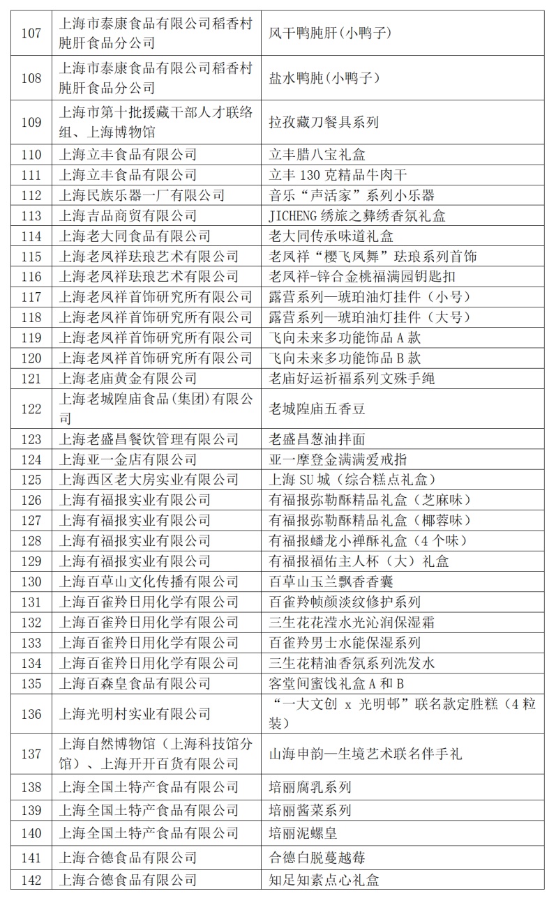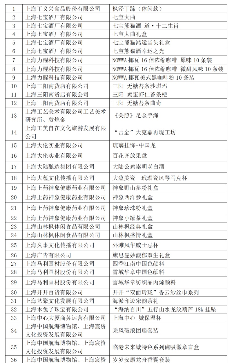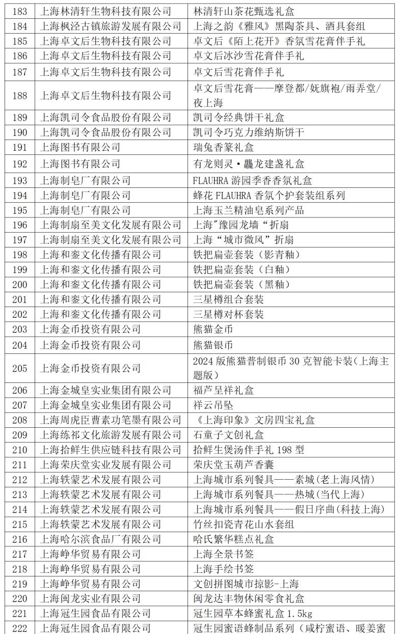 2024年“上海礼物”品牌商品名单具体如下(以笔画为序)
