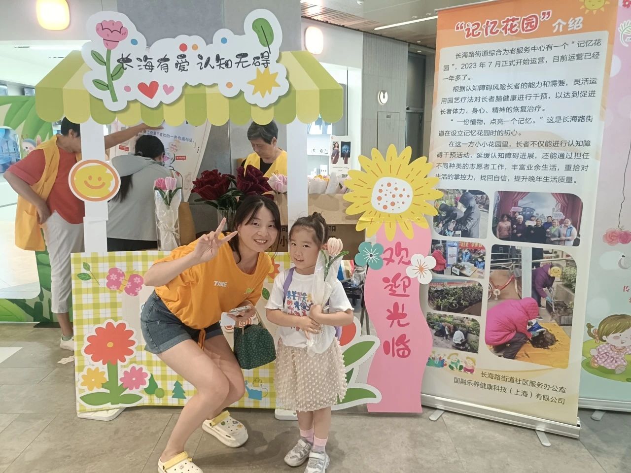 公益游园会当天,活动志愿者们向往来市民介绍认知症的相关知识,并设置互动环节,破除市民对认知障碍老人的刻板印象。活动呼吁大家关注认知症,知晓提前预防和早期干预的重要性。不仅如此,参与互动的市民还可获赠免费的“记忆花店”扭扭棒花束一份。大家纷纷与花店合影留念,现场洋溢着欢乐与温暖的氛围。