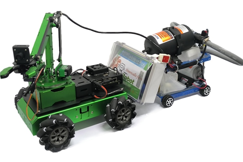该项目由上海应用技术大学智能技术学部董振标联合多学科共同攻关研发。团队针对小青菜在生长过程中容易受到病虫害的侵扰,项目将创新性的机械结构和机器学习算法以及先进的传感技术和人工智能等综合性应用于现代植保管理体系,实现对小青菜的病虫害检测、喷洒农药等功能。采用喷口、摄像头和抓夹结构集成式的设计,使得机器人适用于小青菜生长的复杂环境,从而提高了机器人的通用性和适用范围。