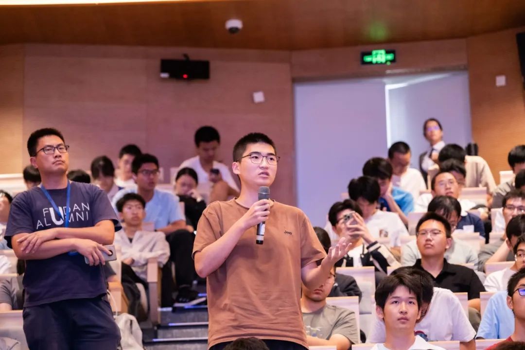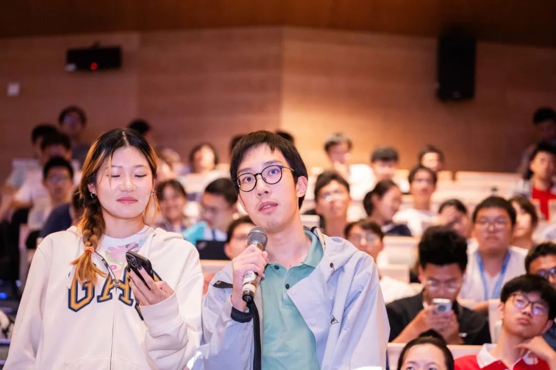 在互动环节,同学们踊跃提问。2024级相辉学堂班李添意2024级相辉学堂班施昊旸提问:“在如今飞速发展的新时代,本科生应该更加注重基础学科能力的培养,还是紧跟以AI为代表的时代前沿技术的进步?”