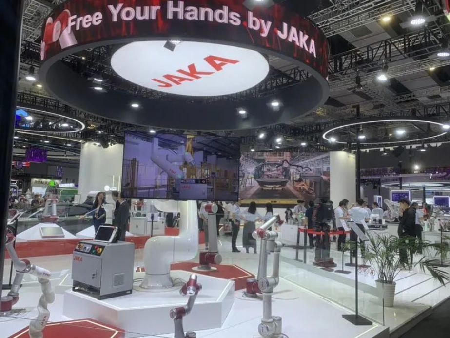 另一边,节卡机器人也带来协作、复合、双臂等多种类型的机器人大秀。全球首发的JAKA MAX系列工业协作机器人成功斩获今年工博会CIIF大奖,在保证40公斤有效负荷的条件下,机器人运行能耗下降40%,控制精度提升25%,装配测试时间减少约30%。