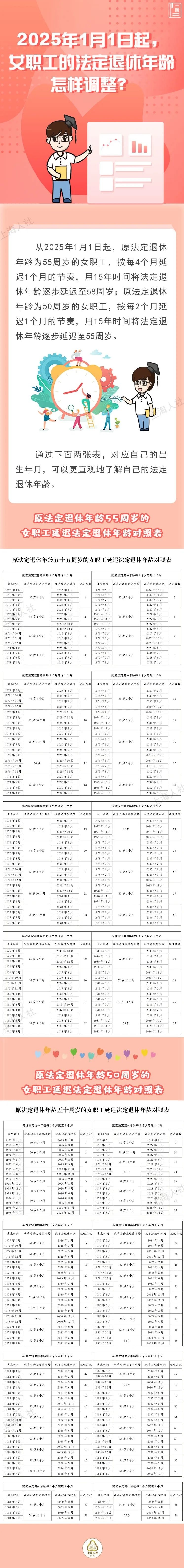 9月13日,备受关注的《全国人民代表大会常务委员会关于实施渐进式延迟法定退休年龄的决定》正式发布,渐进式延迟法定退休年龄明年1月1日起施行。消息发布后,引发不少网友的热议。今天来讲一讲,延退政策出台后,女职工的法定退休年龄怎样调整。