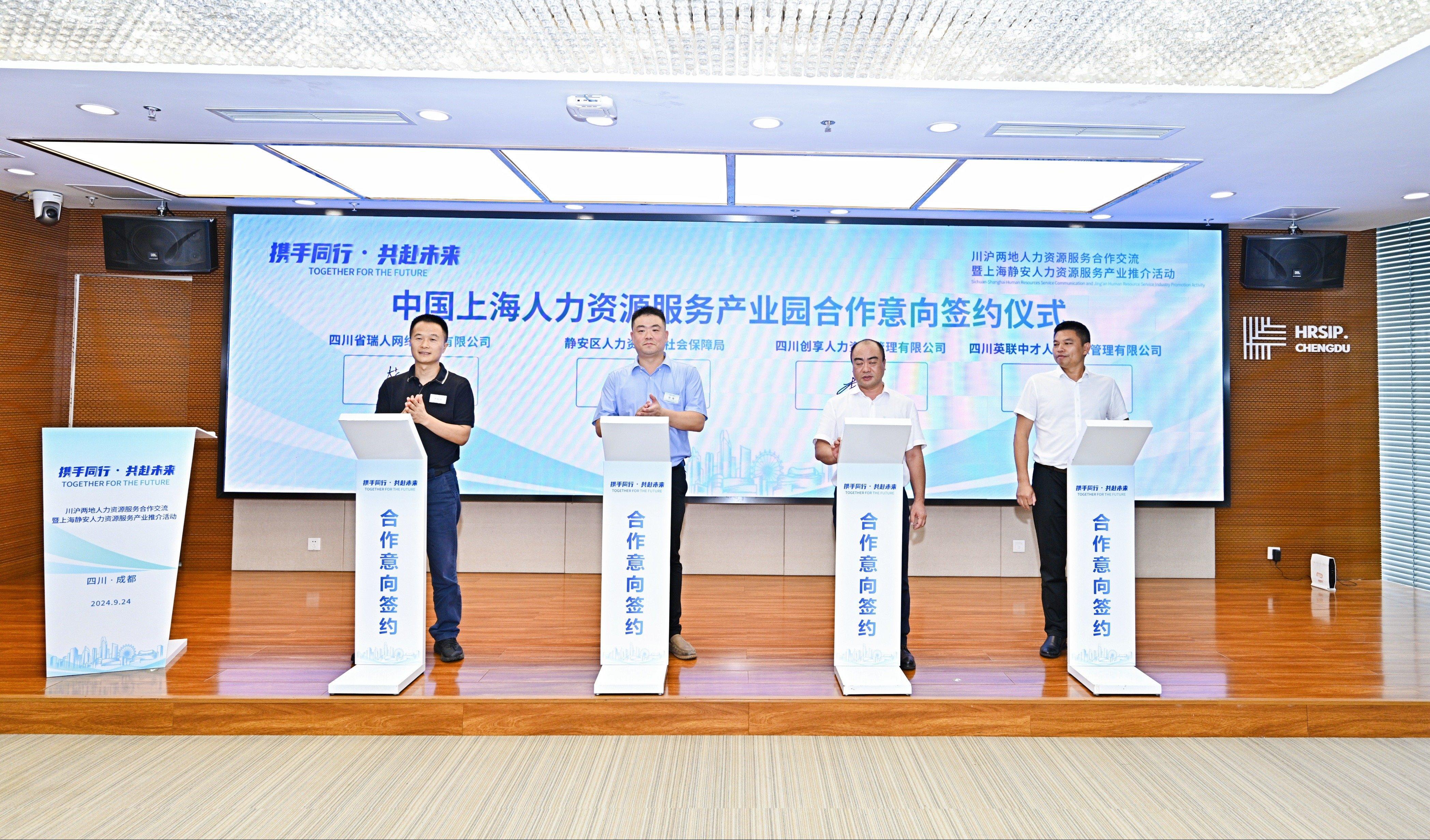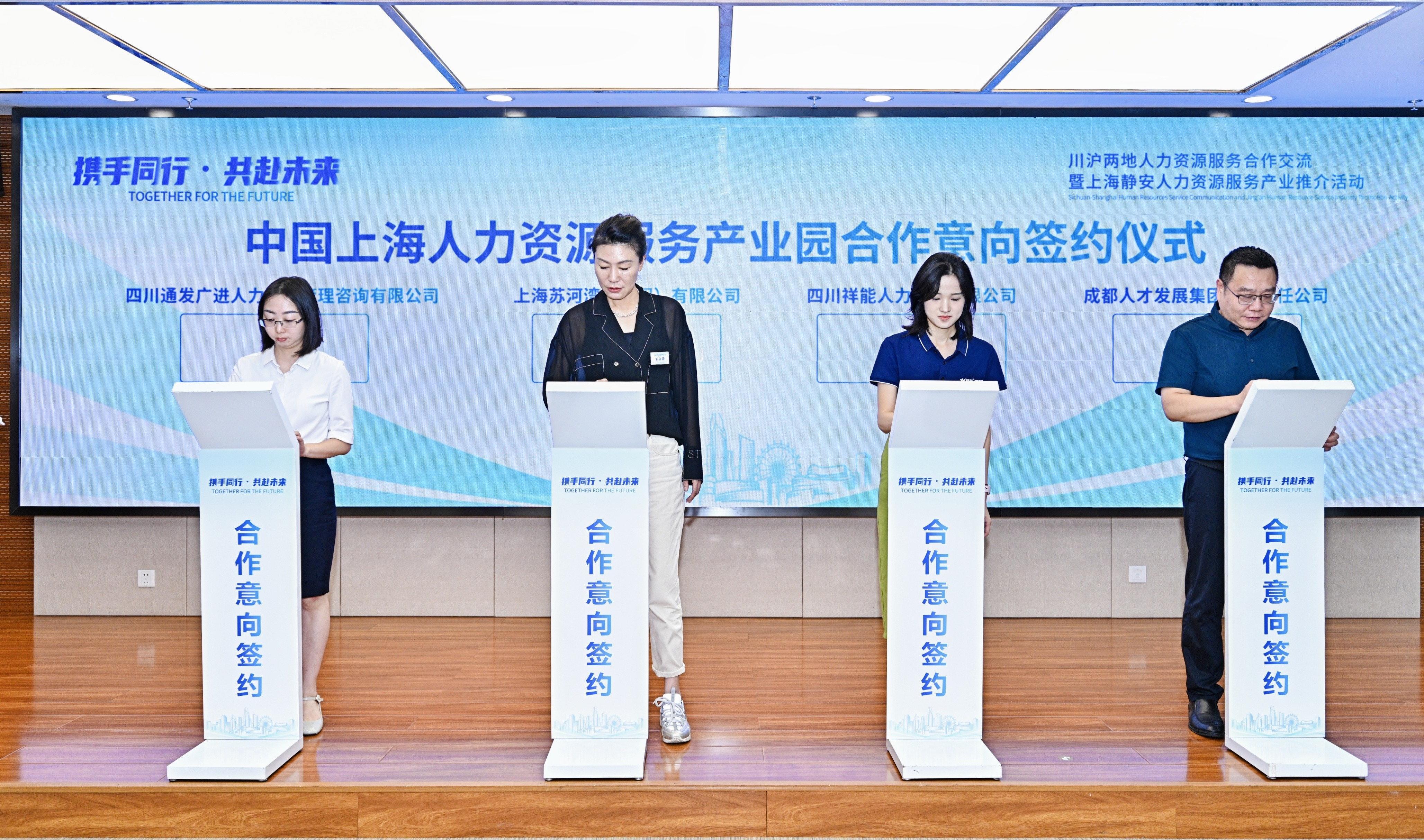 六家四川人力资源服务企业也分别与静安区人力资源和社会保障局、苏河湾集团签订合作意向,加快在拓展业务、市场资源、发展空间上的合作。