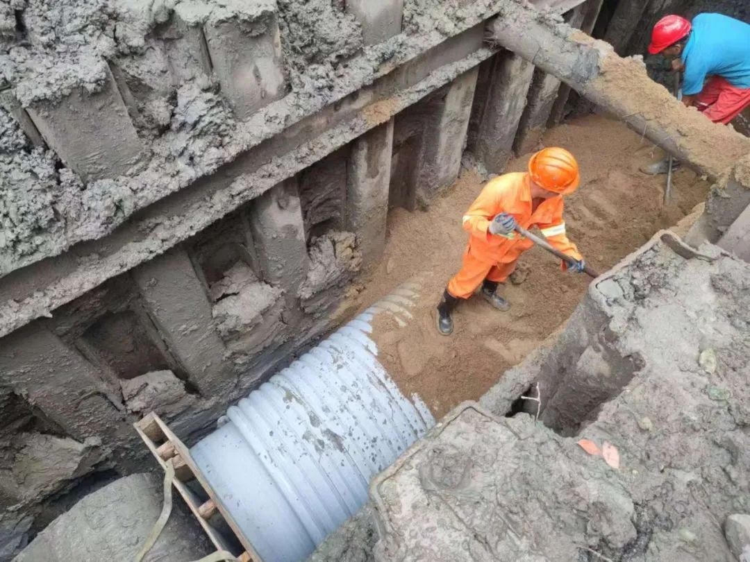 本项目在前期设计过程中,由于地下公用管线密集,导致下游接入武宁路雨水管道难度陡增。经多次方案比选论证,最终确定实施方案,即废除原DN600-DN800的老旧管道,改建为DN1000-DN1400的雨水管道,接入武宁路雨水系统总管,并同步改建支连管、检查井和雨水口;在工程实施过程中,经多方共同努力,克服一次次困难,最终建成发挥效益。