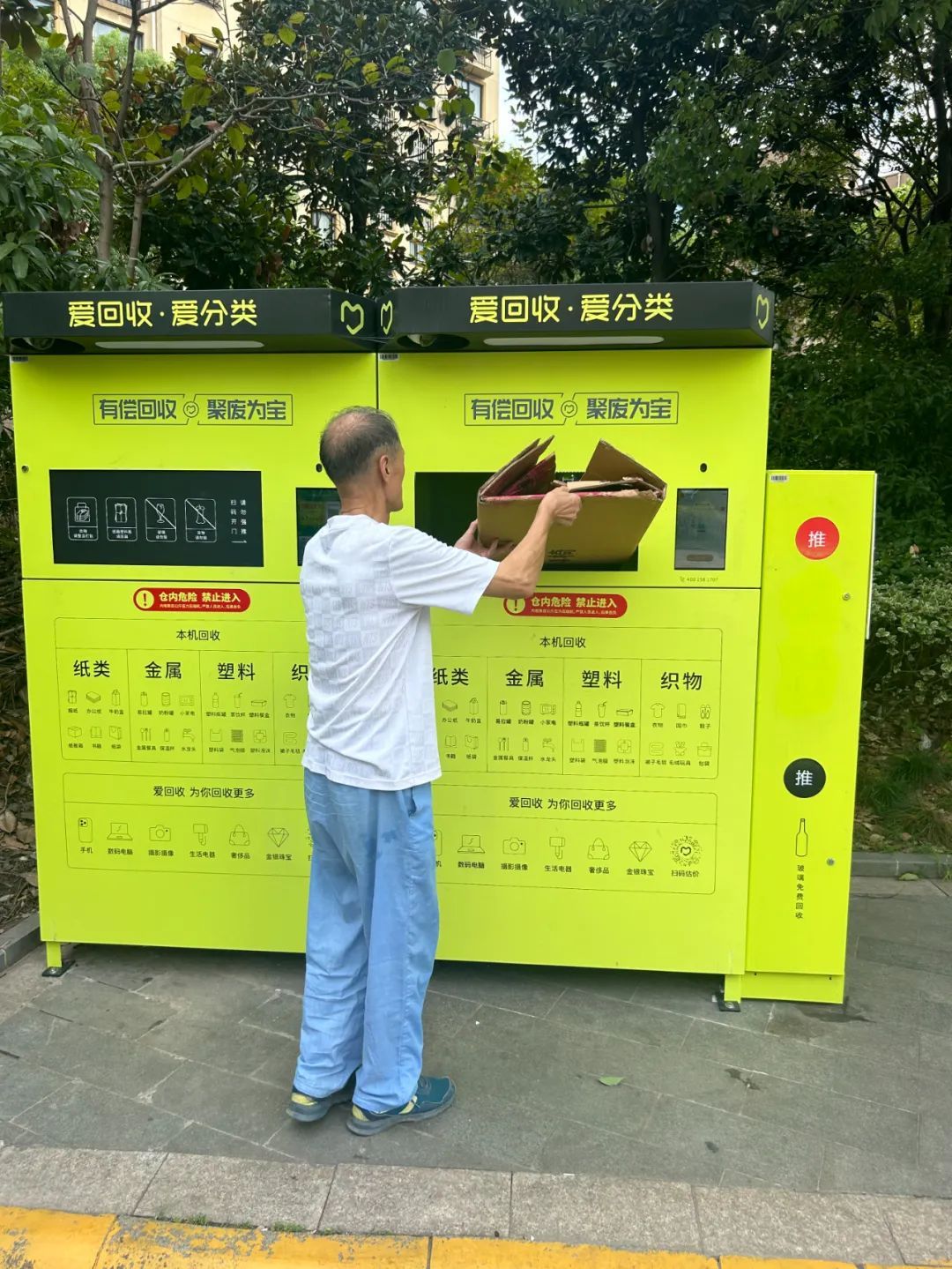 党总支还充分利用智能化手段探索垃圾分类长效、常态,在小区内安装了“爱分类·爱回收”智能回收机,居民在投放可回收物时,通过手机扫码打开投放口,再投入可回收物即完成操作,正确投放后,即可获得相应积分,积分累积到一定程度可在微信直接提现,机器满仓后被清运到末端分拣厂进行相应的再生处理,最终变“废”为宝。“这个回收机不仅做到了有偿回收,还能够助力环境可持续发展,让我们的生活环境变得更好”,小区居民吴女士说道。