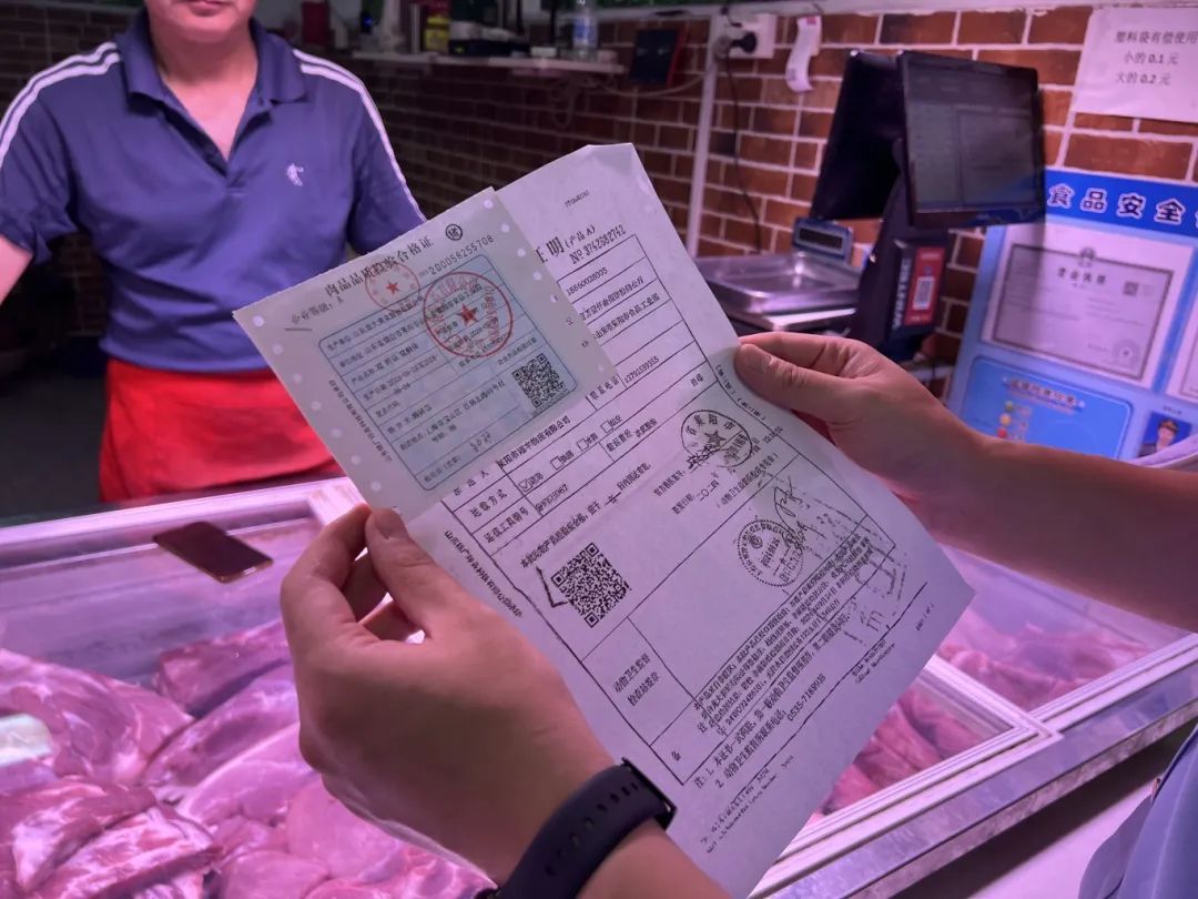 在肉类销售区,执法人员严格把关,不仅检查肉品品质检验合格证明、肉类检疫合格证明,还仔细查看商家的储存条件和卫生状况。对于熟食、豆制品等高风险食品类别,检查人员在索证索票的同时,仔细检查食品加工制作环境、原料来源、包装标签等方面,确保消费者能够购买到安全、放心的食品。