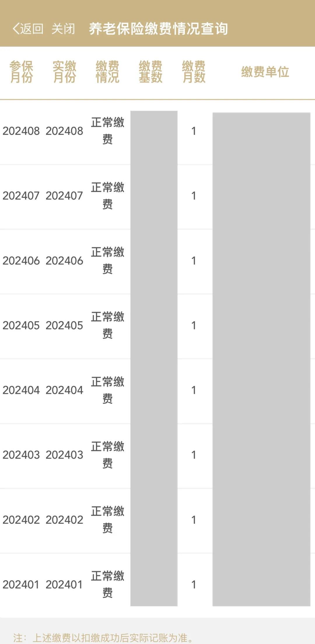 第五步:在“养老保险缴费情况查询”的明细界面内,您就可以查询到缴费相关信息。
