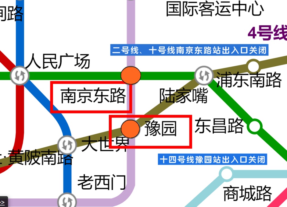 (一)9月30日20时至当日运营结束;10月1日至10月7日,每日16时至当日运营结束,轨道交通二号线、十号线南京东路站出入口、轨道交通十四号线豫园站出入口关闭。