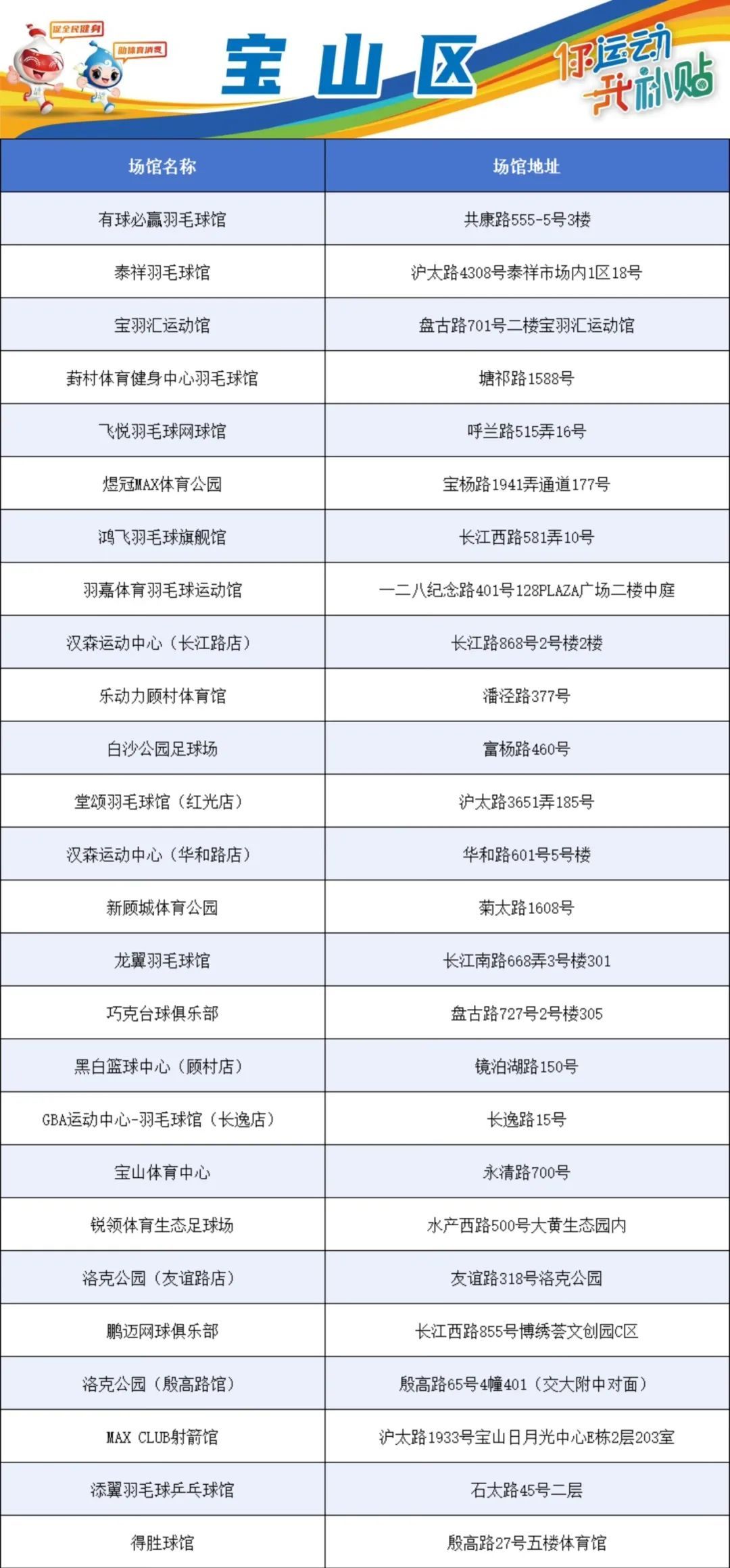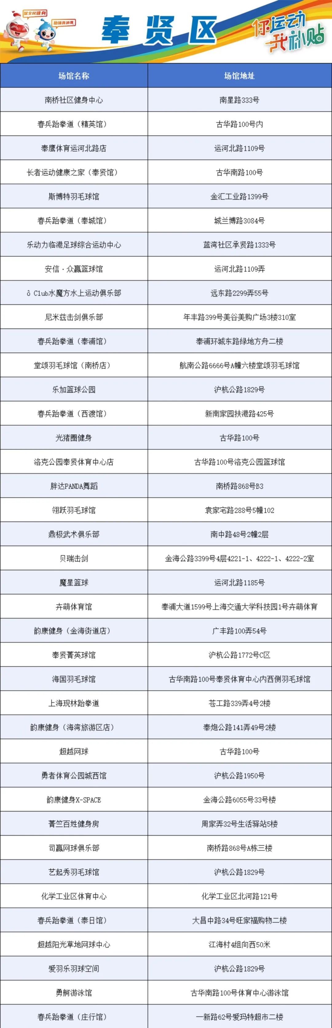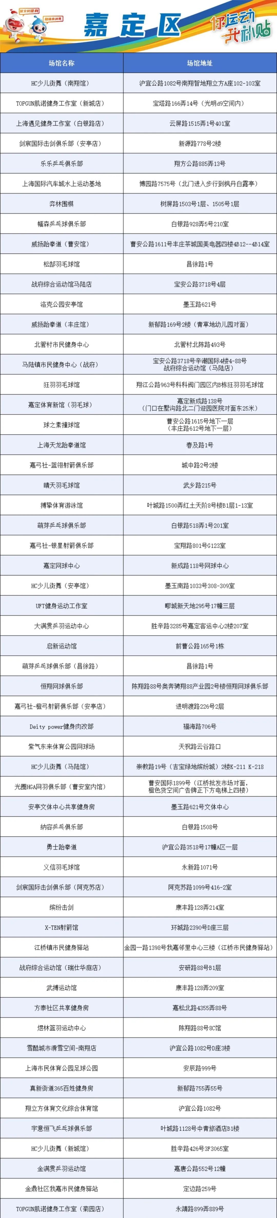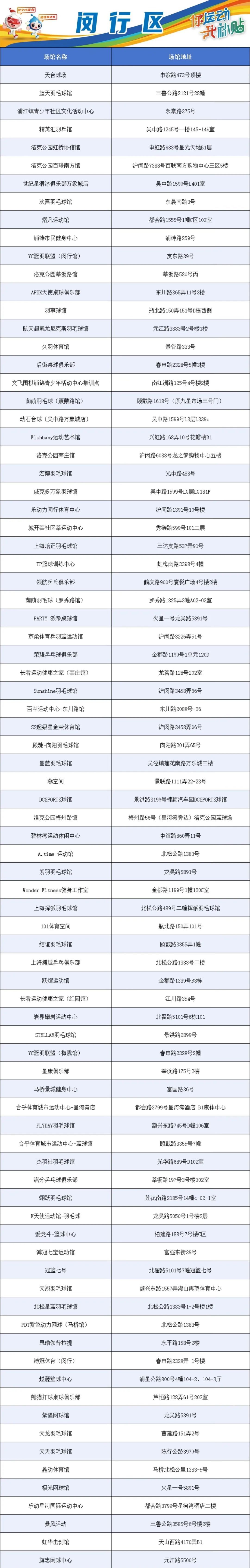 具体信息以场馆实际情况和“来沪动|健身地图”小程序为准,请市民实时关注,安全、文明、有序健身。