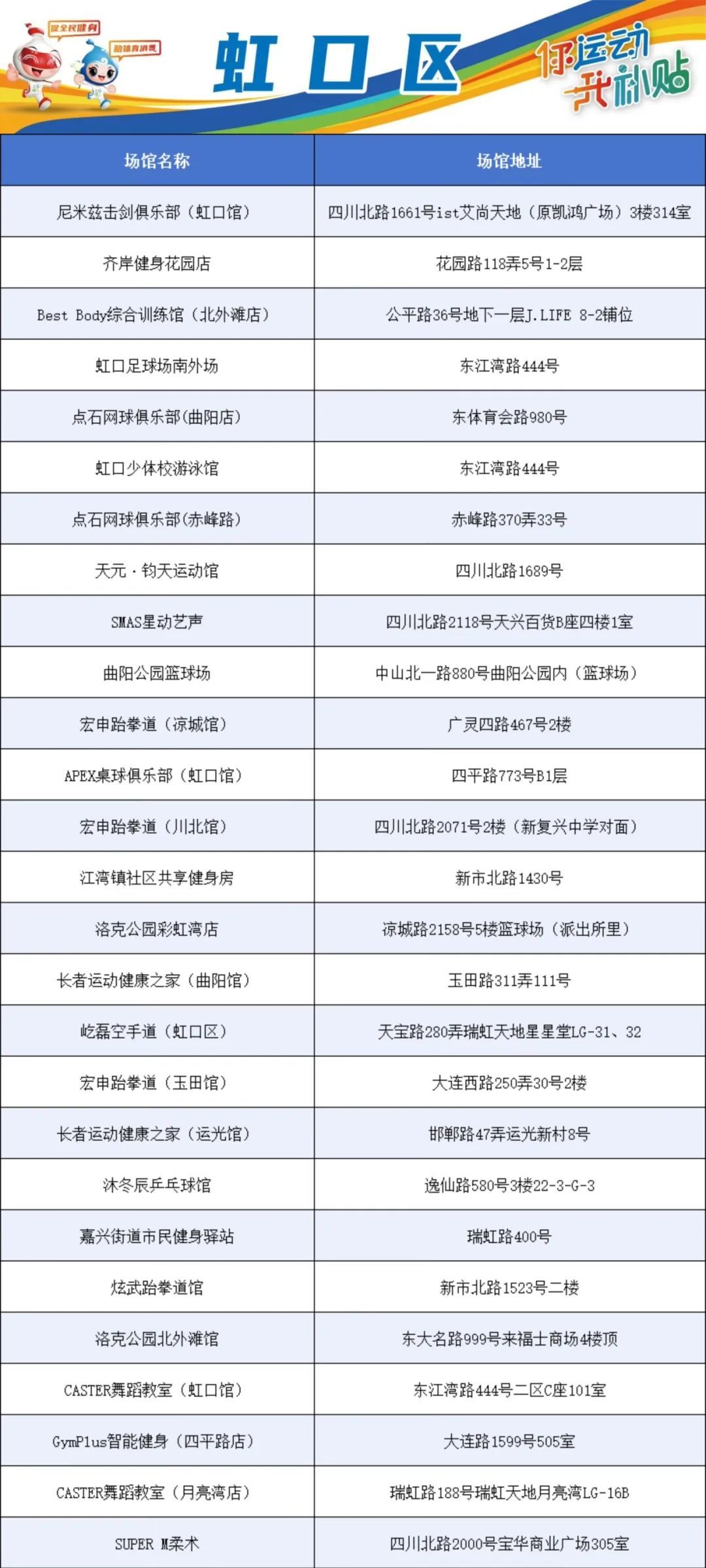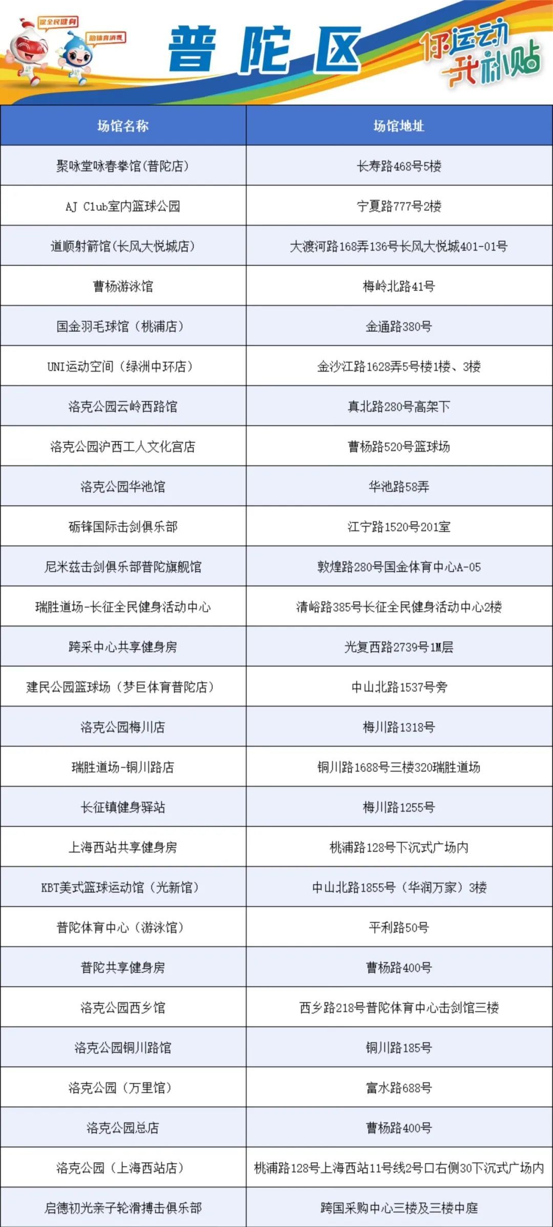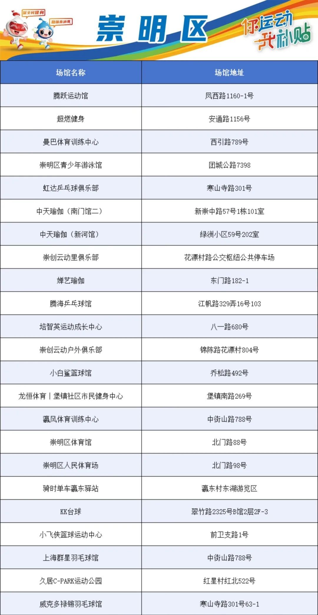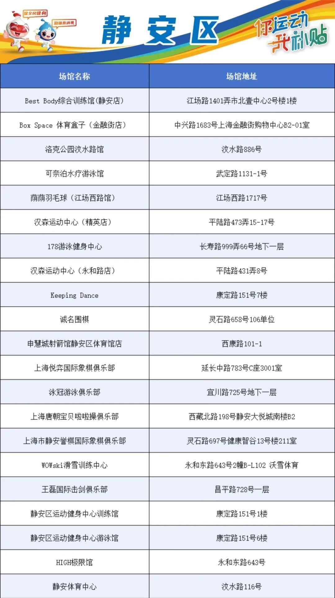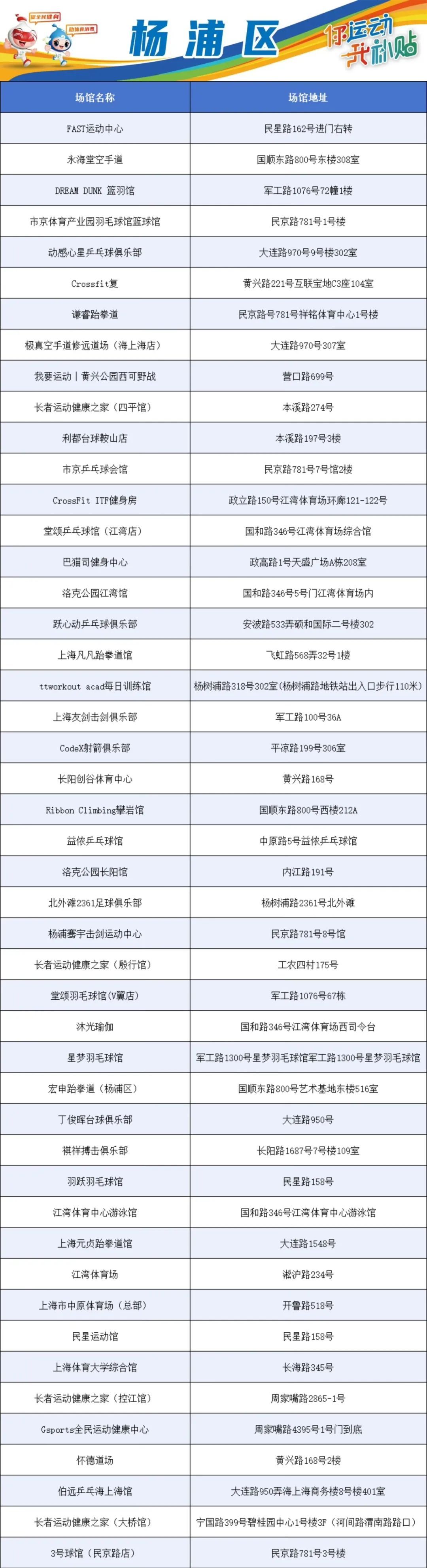 具体信息以场馆实际情况和“来沪动|健身地图”小程序为准,请市民实时关注,安全、文明、有序健身。