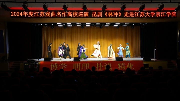 “800张票一发布就被抢光了,今晚演出前还有很多学生想来加座!” 江苏大学京江学院党委副书记、纪委书记蒋豪介绍。中华优秀传统文化作为中华民族的精神瑰宝,蕴含着丰富的道德、智慧、美学价值,对于促进学生全面发展具有不可替代的指引作用。近年来,该校也致力于将传统文化引入校园,增强文化自信,厚植爱国情怀。“《林冲》走进京江学院,不仅让我们的学生认识昆剧,了解昆剧,爱上昆剧,传承中华优秀传统文化,同时这也是一堂生动的美育课,同学们一定会好好享受这场艺术盛宴。”