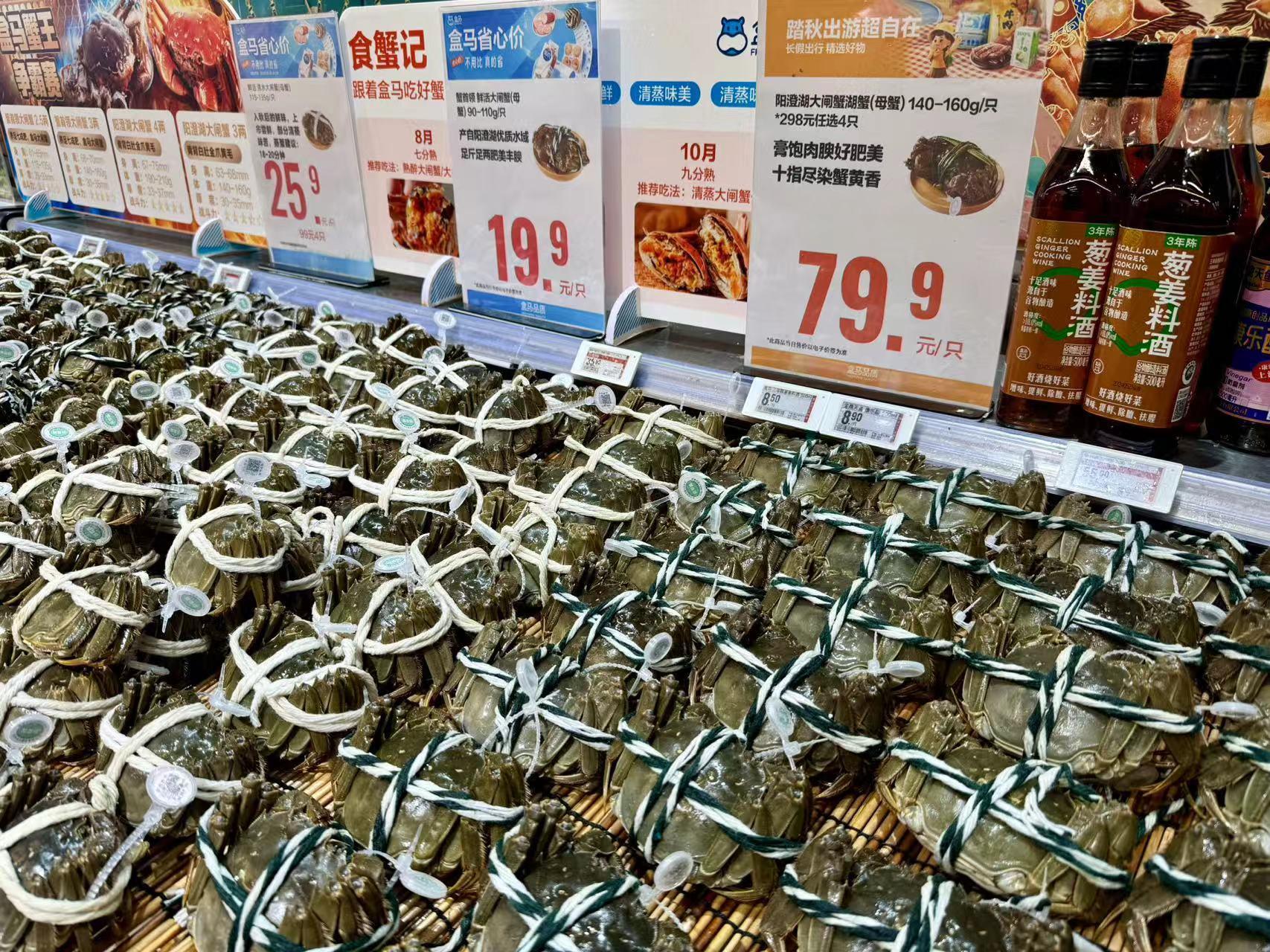 目前,阳澄湖出水的主要为母蟹,蟹黄饱满度已经达到七分以上,10月中旬公蟹基本成熟,届时,4.5两、5两等大规格的母蟹和公蟹会集中上架到盒马。“价格跟去年相比整体差不多,预计在国庆节后可能迎来一波降价。”盒马水产采购李子涵透露。