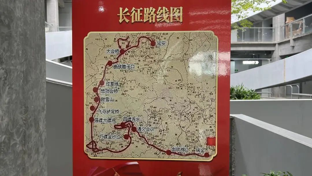 居民王安琪看到长征路线图后感到非常震撼,他告诉记者,“从瑞金一直到延安,又爬雪山,又是过草地,真的很不容易。”