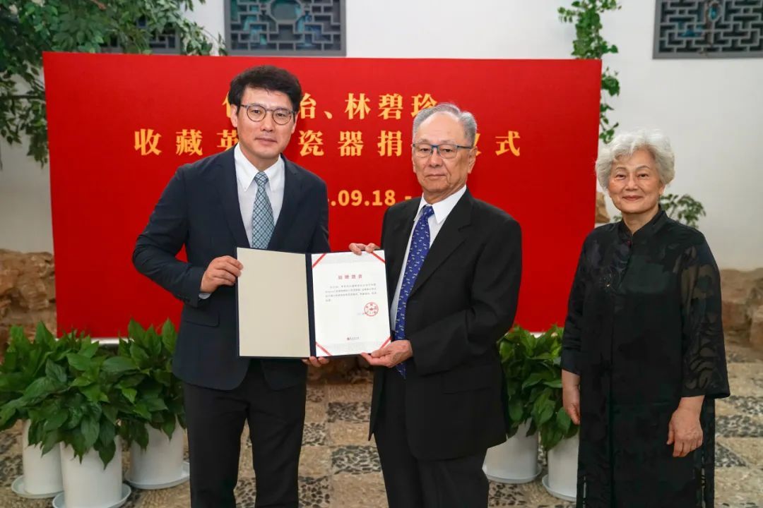 近日,南丰包氏后人包忠诒、林碧珍伉俪将收藏的 150 件英国威基伍德(Wedgwood)瓷器捐赠给上海博物馆,捐赠仪式于2024年 9 月 18 日上午在上博人民广场馆何东轩举行。上海市文化和旅游局党组成员、上海博物馆馆长褚晓波向包忠诒、林碧珍夫妇颁发捐赠证书,对捐赠人的信任和厚意表示衷心的感谢。仪式由上海博物馆副馆长李峰主持。