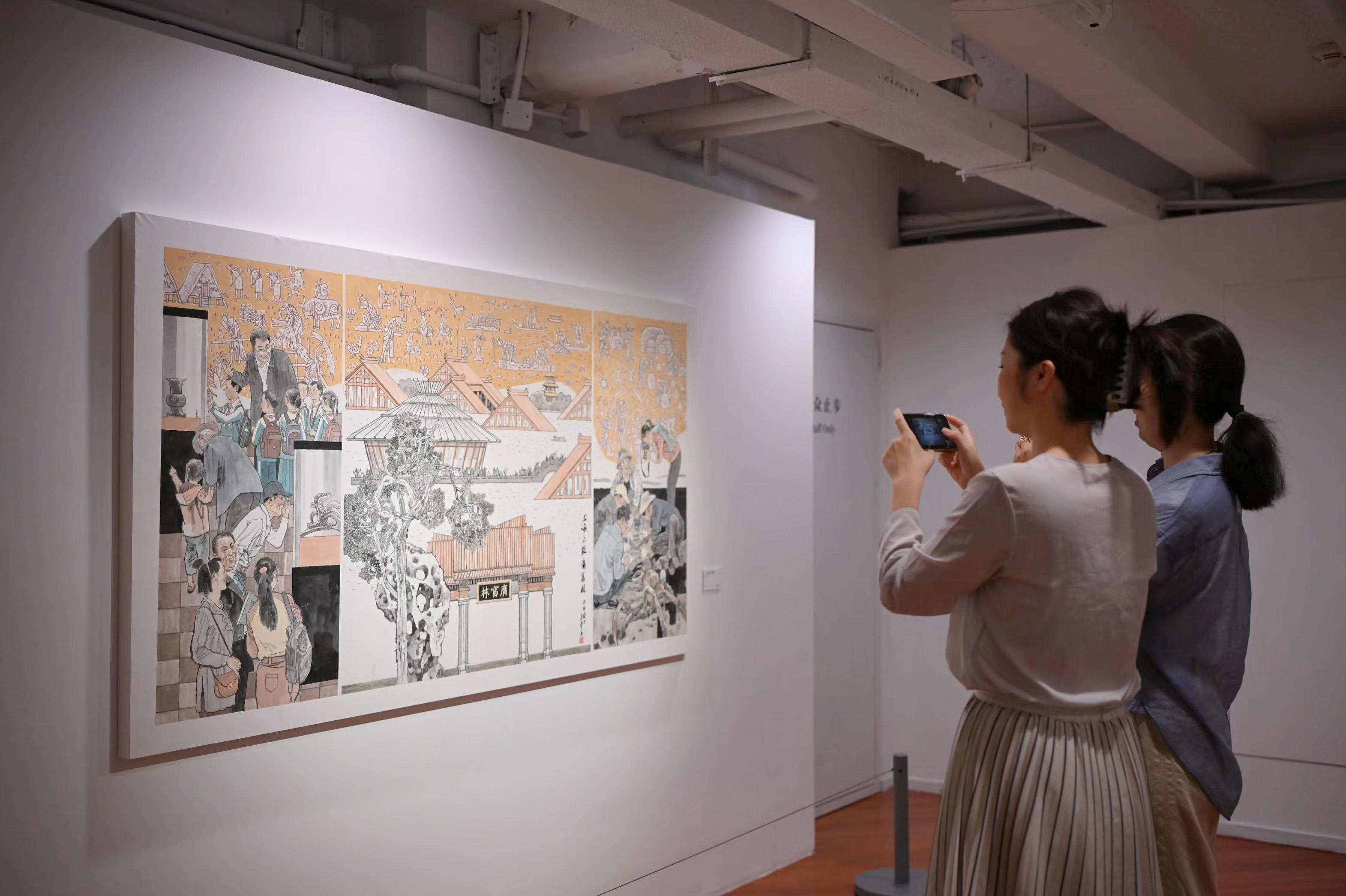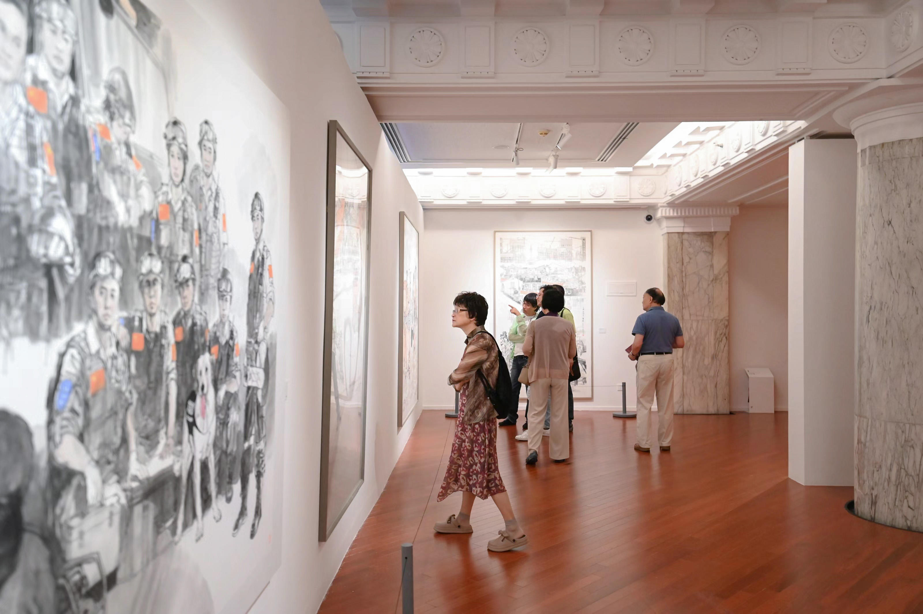 展览围绕“繁花”“时代”“笔墨”“雅集”4个维度,精选了人物画苑11位艺术家近50幅中国画作品以及10位人物画苑顾问的12幅作品。从抗洪救灾的英勇斗士到城市建设的劳动者,从欢庆节日的喜悦人群到摩登时尚的城市丽人,艺术家们用画笔捕捉了新时代的每一个精彩瞬间,将上海的多元文化与城市精神展现得淋漓尽致。