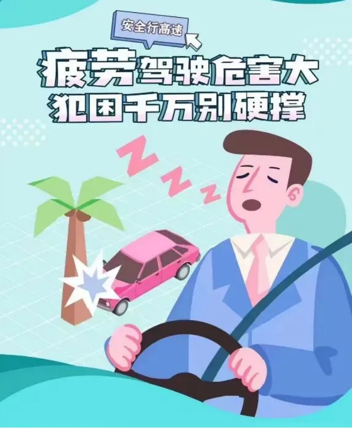 在驾车出行前应保障充足睡眠。长途行车还应该注意连续驾车时间不宜过长,如果在驾车途中感到倦意,一定要到就近服务区停车休息,切勿在高速公路违停休息。