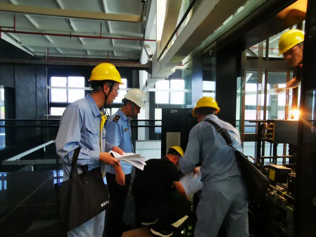执法人员对电梯是否办理使用登记、是否定期检验、是否按规定配备电梯安全员、是否按期维保等情况进行了集中查验,并在国家电梯质量监督检验中心和上海交通大学电梯检测中心技术专家的支持和指导下,依次对被抽查电梯进行限速器-安全钳联动试验,抽查维保工作质量,有效排查安全隐患。