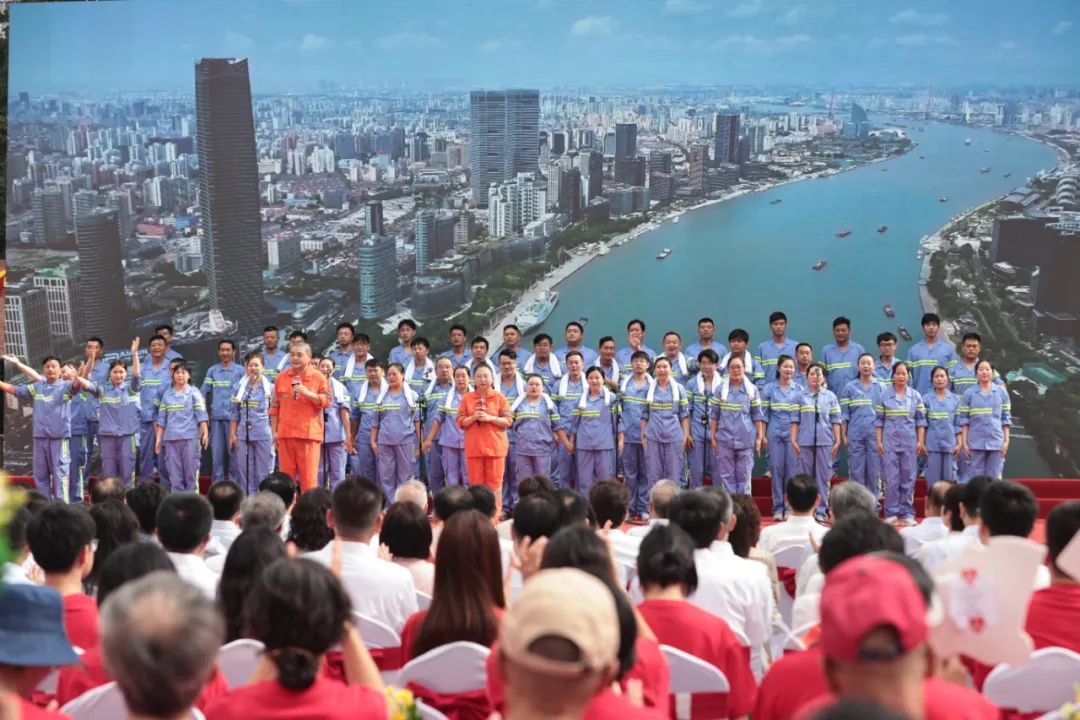 紧接着,城发集团建设者合唱团带来了《咱们工人有力量》,展现了工人阶级的坚韧不拔和无私奉献精神。
