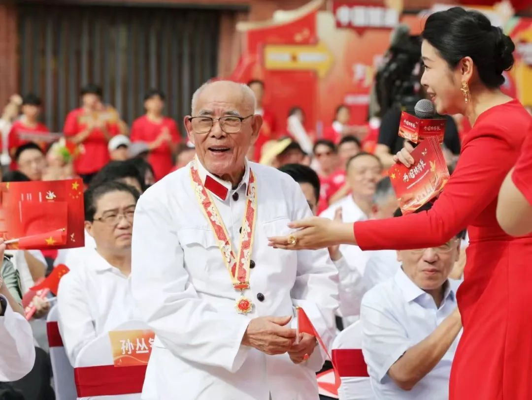 活动还特别邀请了96岁高龄的老兵孙丛铭作为嘉宾,孙老先后参与渡江战役、上海解放战争等,现场,老人也为祖国献上祝福,祝愿伟大的祖国繁荣富强,国泰民安。