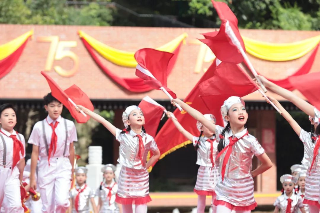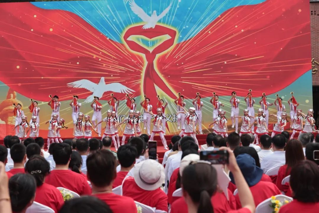 没有革命先烈的无私奉献,就没有如今的盛世中华,而实现中华民族伟大复兴,需要一代又一代人接续奋斗,由上海市学生艺术团仲盛舞蹈团携手虹口区青少年活动中心合唱团孩子们带来的一曲《我们是共产主义接班人》许下了请党放心,强国复兴有我的铿锵誓言,也唱响了时代强音。
