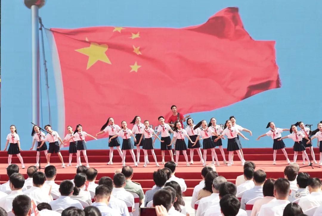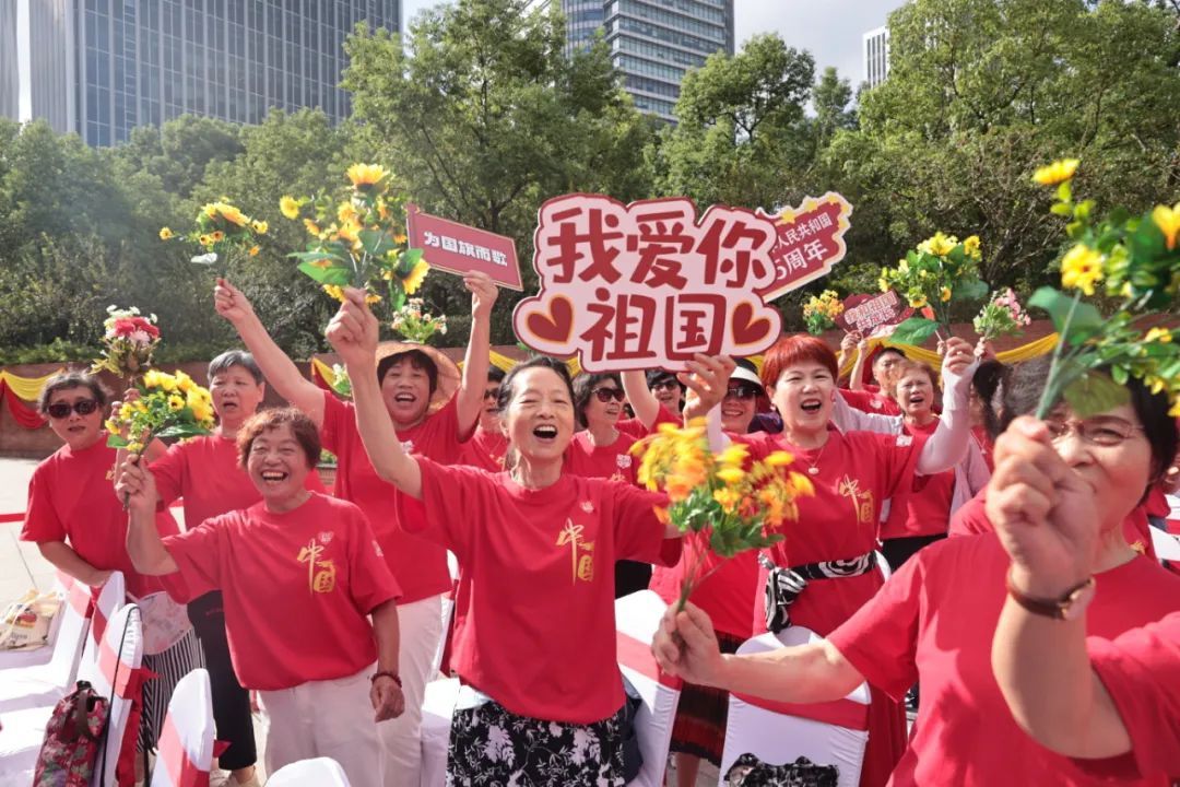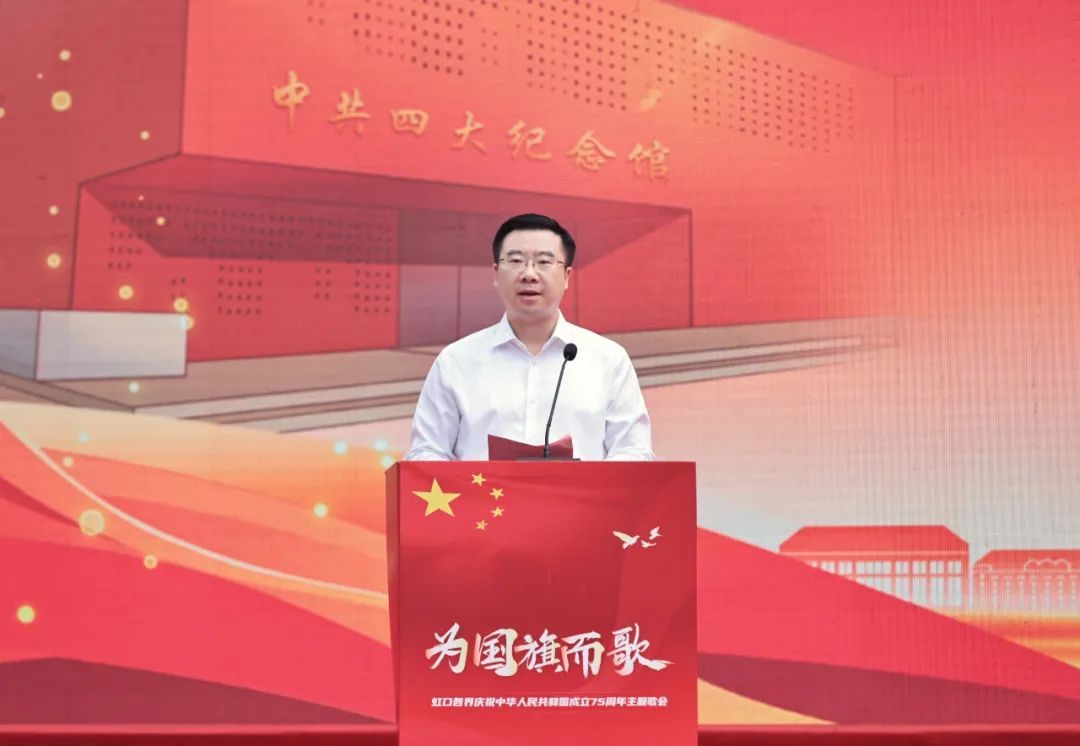 75年沧桑巨变忆历史壮举,75载奋斗征程写壮丽篇章,9月29日上午,虹口区各界人士齐聚中共四大纪念馆国旗广场,隆重举行“为国旗而歌——庆祝中华人民共和国成立75周年主题歌会”。活动以“歌唱祖国”为主题,虹口区机关干部、部队官兵、在校师生、居民群众等各界人士线上线下开展“千人大合唱”,展示全区昂扬向上精神风貌,唱响时代最强音。区委书记李谦、区人大常委会主任朱勤皓、区政协主席石宝珍、区委副书记姜爱锋出席活动。