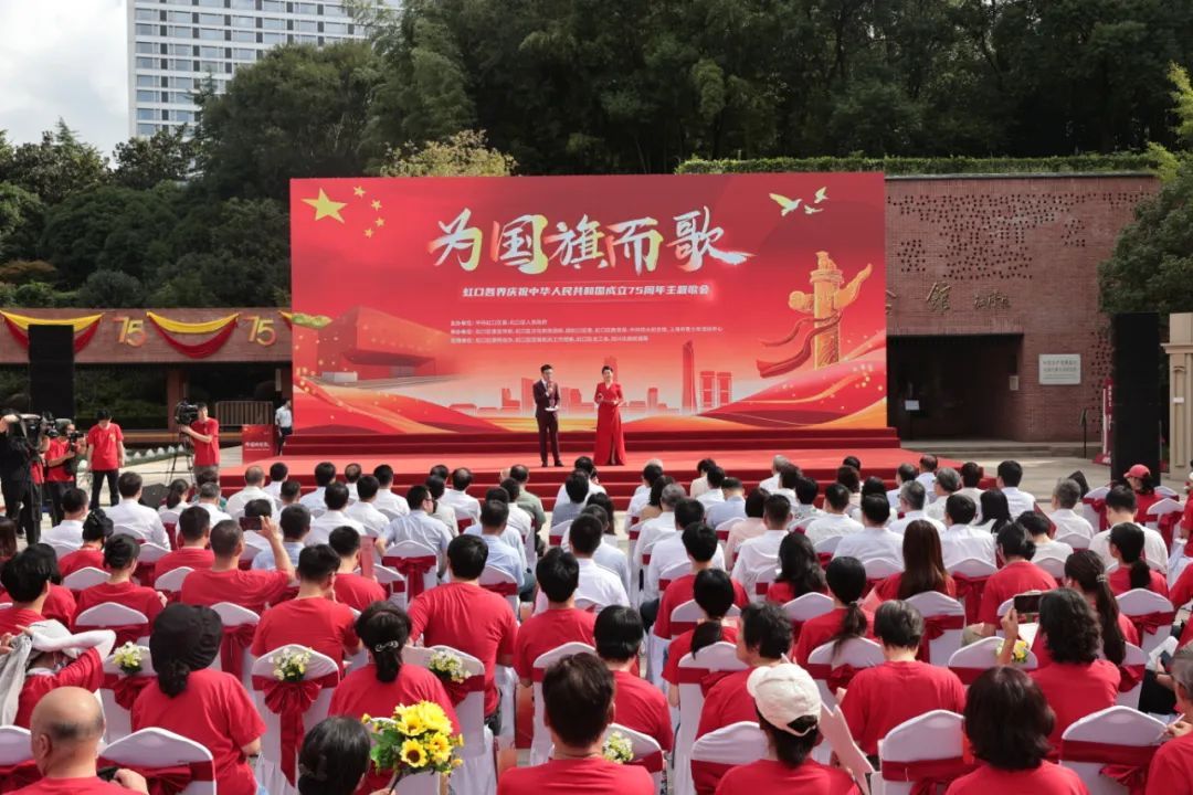 整场歌会在全场大合唱《歌唱祖国》中圆满落幕。来自区内八个街道的群众文艺团队与现场观众一同跨时空合唱,用虹口社会各界的千人之声汇聚成时代强音,将最美好的祝福送给伟大的祖国。这场文艺演出不仅展示了虹口人民对祖国的深情厚谊和美好祝愿,也彰显了虹口区在传承和弘扬红色文化方面的坚定决心和实际行动。