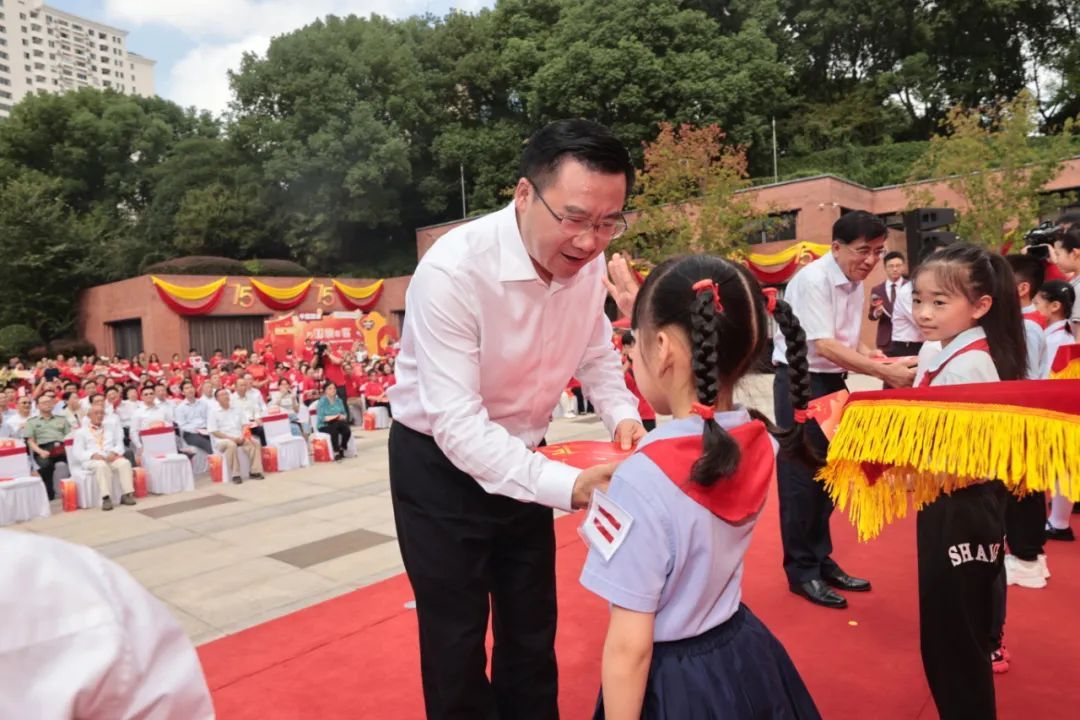 升旗仪式后,区委书记李谦致辞。他指出,75年前,新中国诞生的喜悦和激动,在虹口这片红色热土激荡飘扬。虹口“文化三地”的红色基因代代相传,鼓舞一代又一代虹口人民勇往直前、不懈努力,成功创造一个又一个新的伟大胜利。75年来,我们伟大的祖国披荆斩棘、扬帆奋进。虹口也乘着新中国建设和改革开放的春风,团结带领全区广大党员干部群众开拓奋进、砥砺前行。75年来,我们伟大的祖国风雨兼程、沧桑巨变,开启了实现中华民族伟大复兴的新征程,踏上了中国式现代化建设的康庄大道。虹口作为上海国际大都市的中心城区,正加快建设“上海北外滩、都市新标杆”,成为中国式现代化重要展示窗口。坚信党领导下的社会主义现代化发展道路必将越走越宽广、越走越光明,虹口高质量发展的宏伟蓝图一定会加快转化成为美好的现实图景。