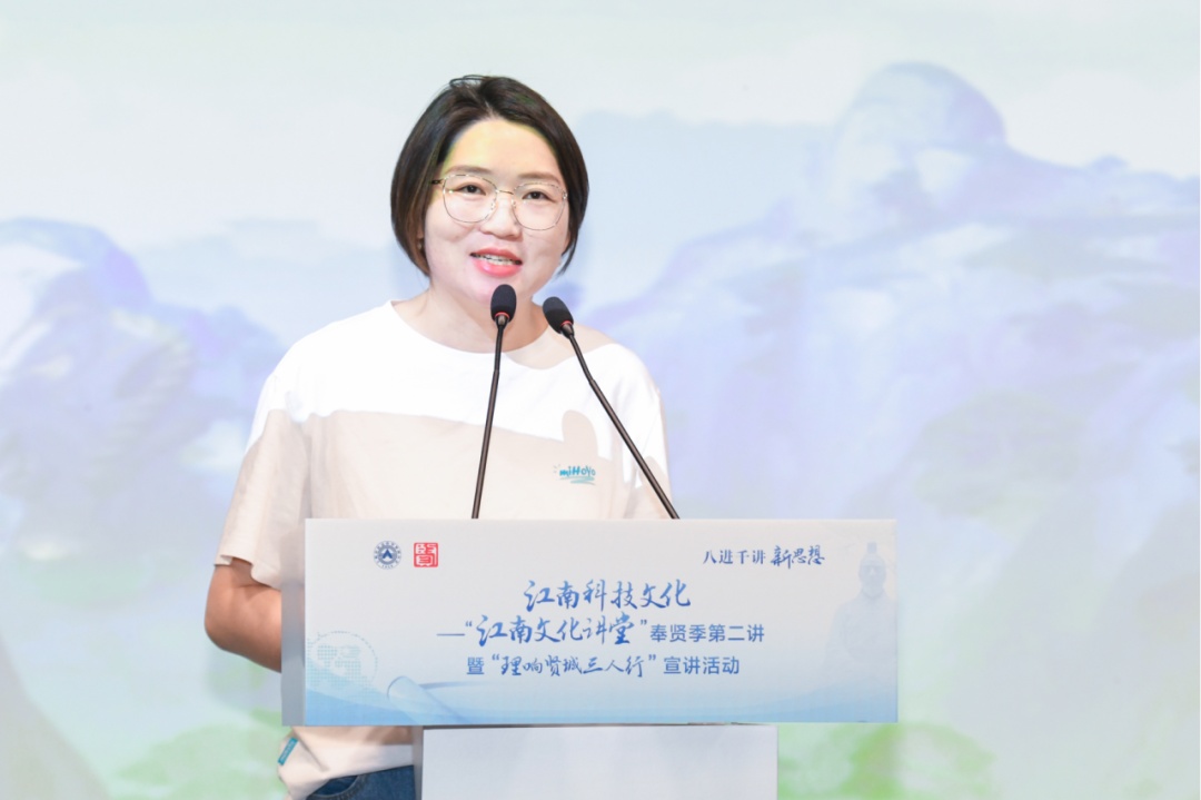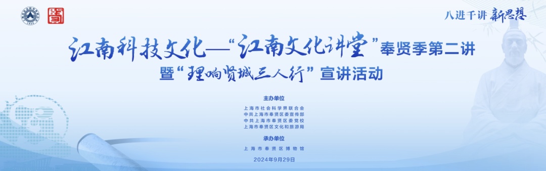 2024年9月29日,江南科技文化——“江南文化讲堂”奉贤季第二讲暨“理响贤城三人行”宣讲活动在奉贤区博物馆举办,邀请奉贤区文化和旅游局党组副书记、副局长蒋益峰,上海大学历史学系教授、上海市文史研究馆馆员、国家社会科学基金重大项目首席专家廖大伟,上海米哈游网络科技股份有限公司公共事务总监夏文婷,围绕江南科技文化,共同探讨传承弘扬中华优秀传统文化、不断推进文化创新创造的时代价值和实践路径。上海市社联、奉贤区政协社会和法制委、奉贤区妇联、区委宣传部相关领导出席活动。