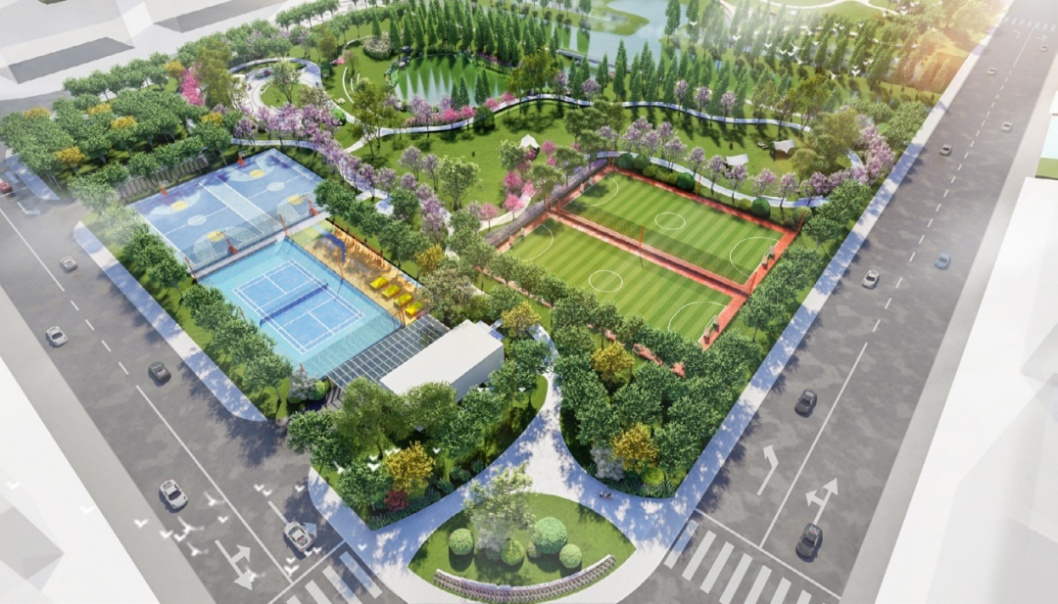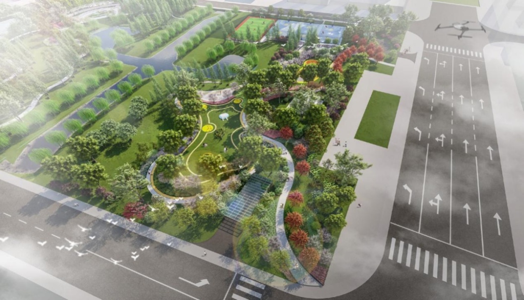 E04-01、E04-05地块公共绿地项目以现代风格的设计手法,融入中国古典园林造园理念,移步换景,打造出一个集娱乐休闲、健身运动为一体的城市公园,以生态文明建设,城市公园为基底,满足全民健身需求。