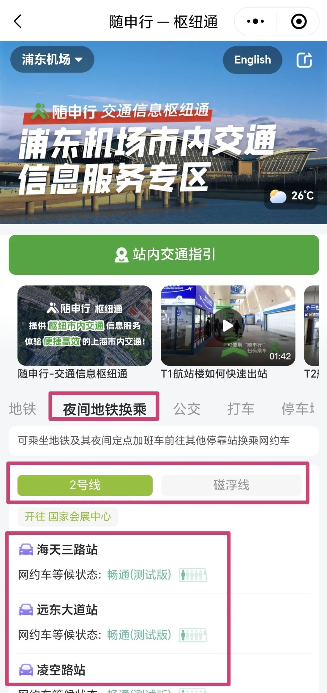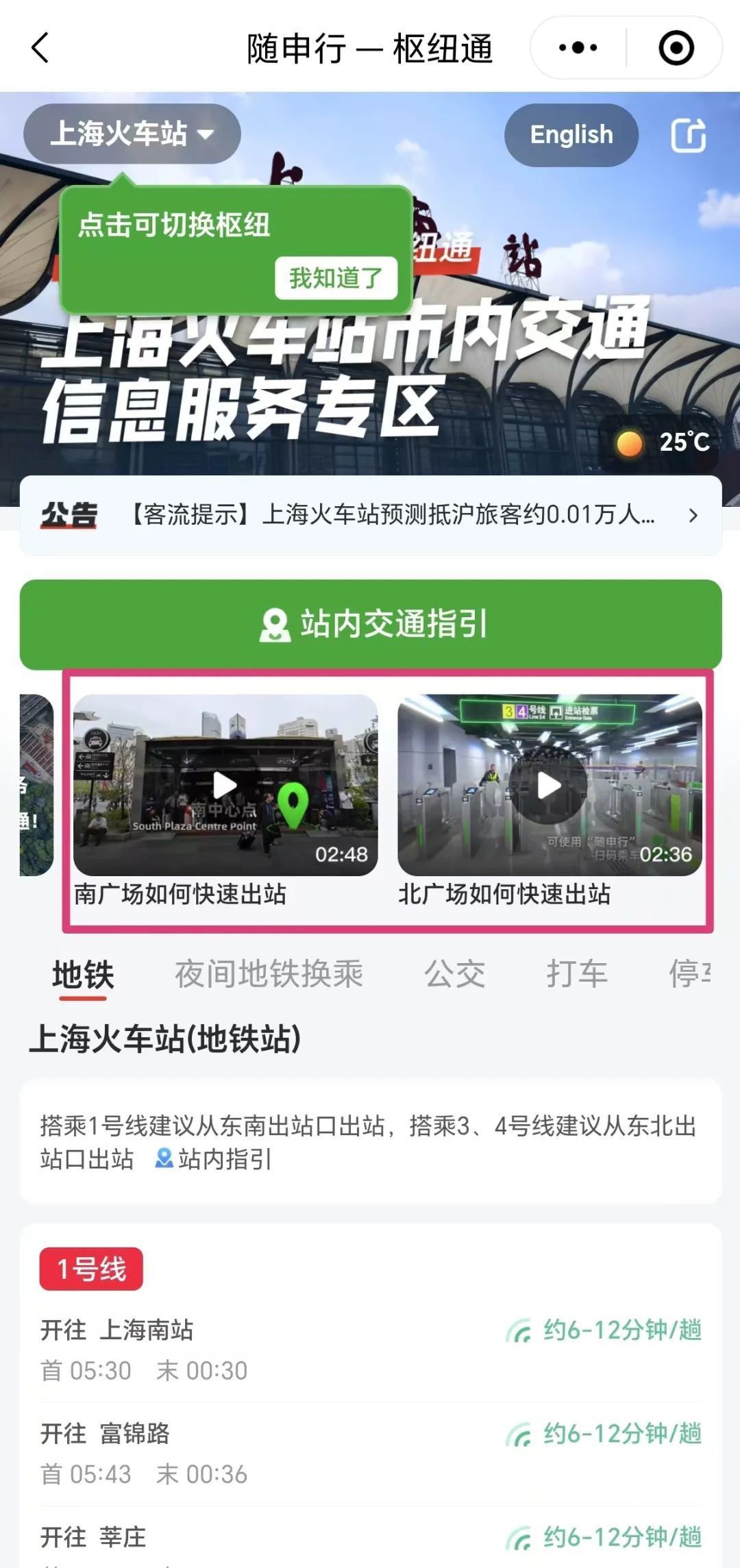 5、“枢纽市内交通”页面内有相关视频,乘客也可根据视频的引导查看如何快速出站。