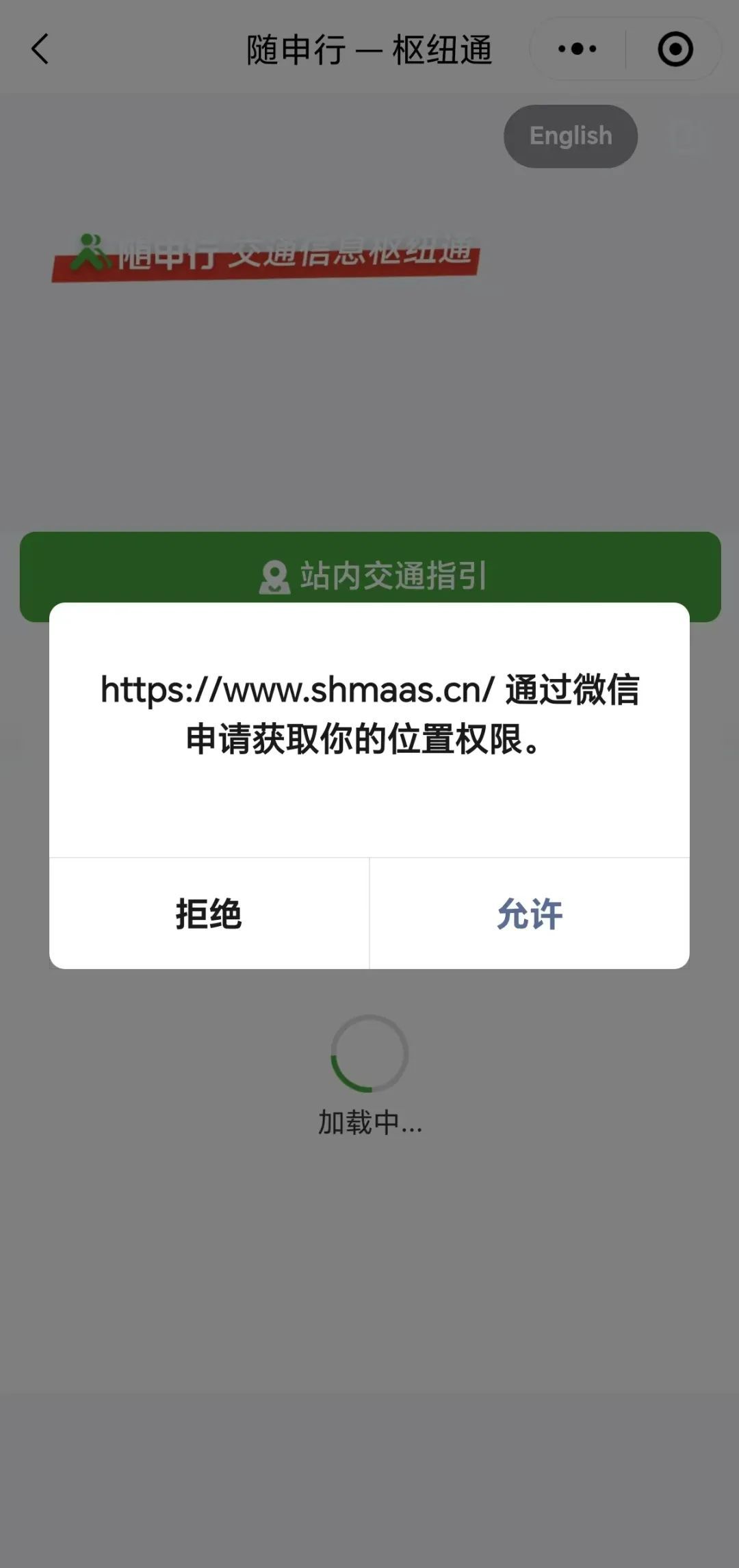 3、点击进入后会被要求授权位置信息,点击“允许”即可。