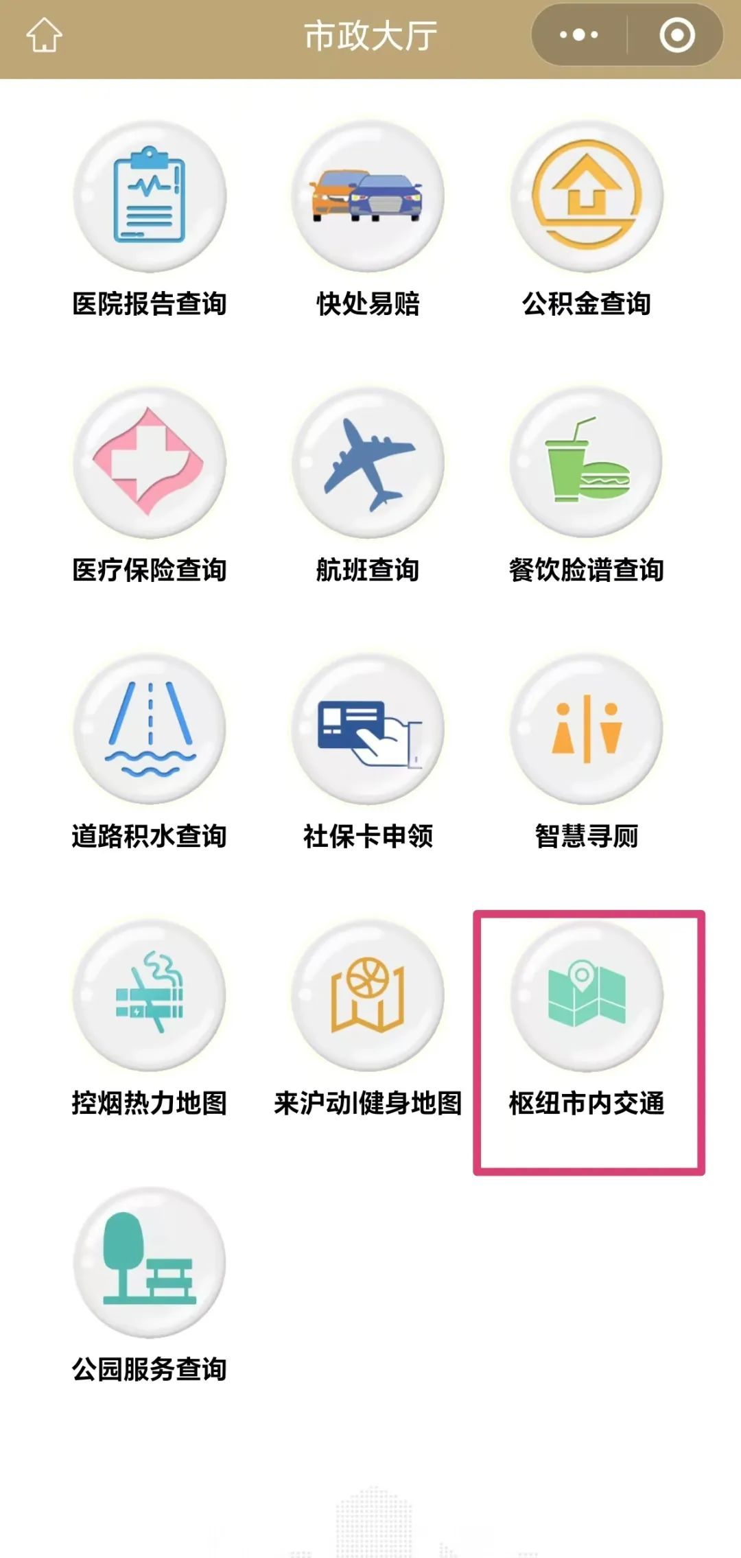 2、下滑页面找到“枢纽市内交通”。