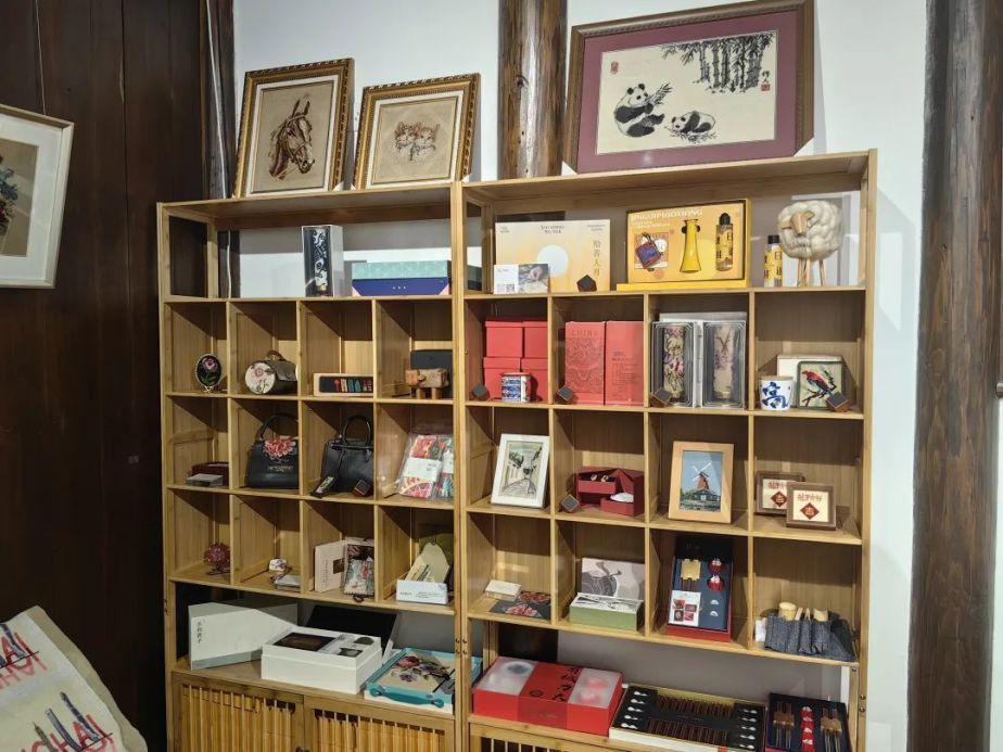 除了展品内容和展陈形式的创新,本次展览更是一次绒绣艺术与现代创意产业融合的实践。展厅特设了“好玩的绒‘YI’绣”空间,摆设一系列趣味绒绣文创产品,包括绒绣茶具套装、绒绣包、绒绣家居用品、挂画等,巧妙地将绒绣艺术融入日常生活,让人们在感受传统文化独特韵味的同时,也能享受到实用性。