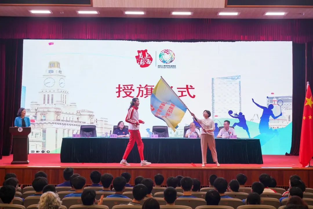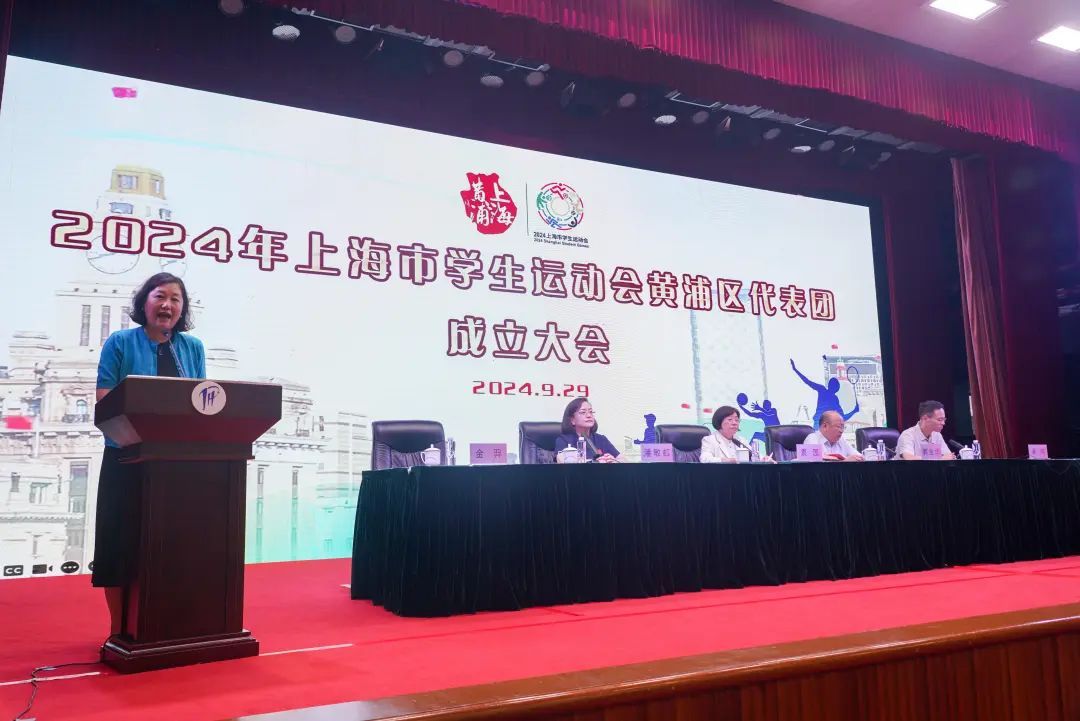 9月29日下午,2024年上海市学生运动会黄浦区代表团成立大会暨动员会在黄浦区青少年艺术活动中心二楼剧场举行。黄浦区人民政府副区长袁园、代表团团部成员、参赛项目领队、教练及部分运动员代表等近百人参加大会。