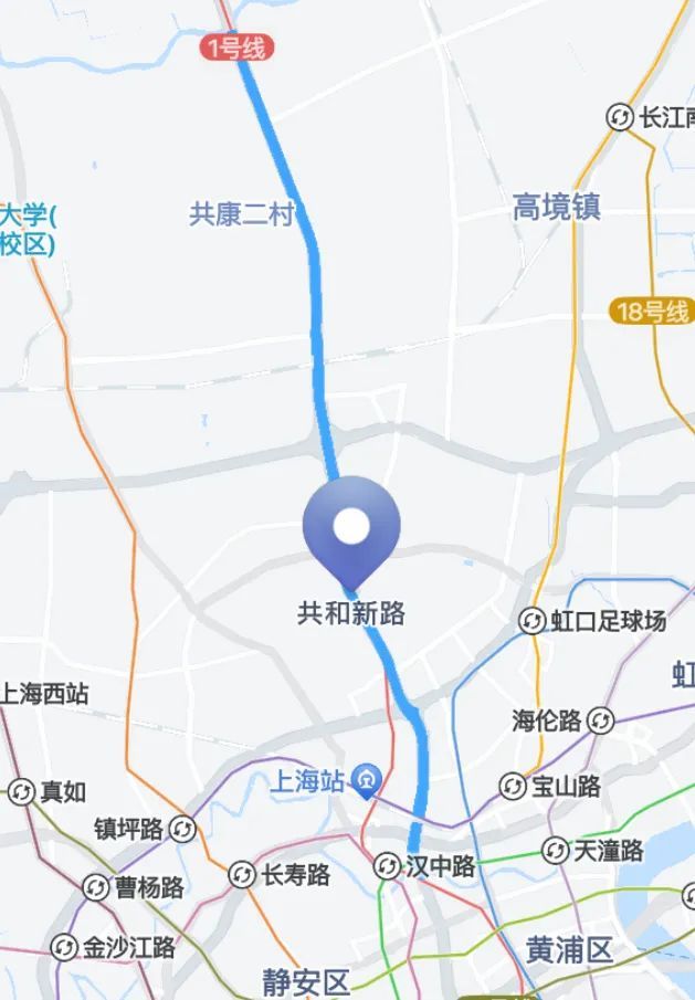 该道路位于中心城区北部,跨静安、宝山两区的主干道。1920年始,自南向北逐段辟筑,因与共和路相衔接且为新筑而得名。20年代中期,向北延伸至老沪太路,铺弹石及煤渣路面。1957年自老沪太路以北,征用农田筑路至走马塘。1959年又向北延伸至长江西路,将场中路以北原一二八纪念路的南北向路段全路并入。1982年,长江西路以北年蕰川路并入。2005年拓宽改建后形成现在的规模。沿途有上海马戏城等著名景点。