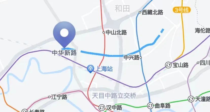 该道路位于中心城区北部,跨静安和普陀两区。1918年,由沪北工巡捐局先筑东段与西段,自会文路至大统路之间未筑,为泥路,命名为中华兴路,不久更名为中华新路。1919年起铺煤渣路面,后共和新路以东改为弹街路面。20世纪30年代后期辟通中间和田路至大统路段。2008年东端起点调整为宝昌路。另外在恒丰北路东侧至沪太路口一小段道路,因地处恒丰路立交桥引桥处,两侧中华新路不能贯通,遂被注销。