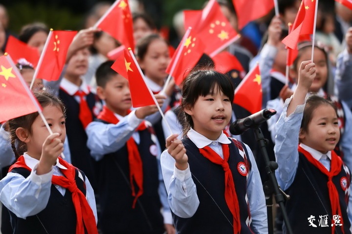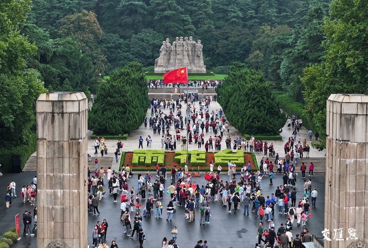 10月1日,南京市雨花台烈士陵园北门广场举行庆祝中华人民共和国成立75周年升国旗仪式。鲜艳的五星红旗冉冉升起,迎风飘扬。各界群众唱响国歌,雄壮的国歌响彻广场。新华日报·交汇点记者 邵丹摄