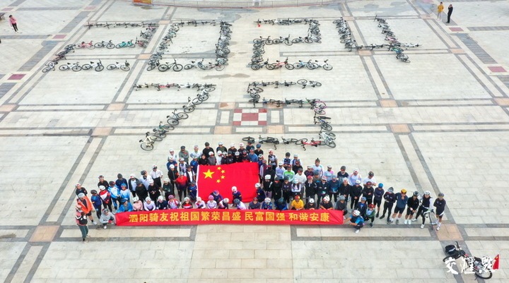 10月1日,宿迁市泗阳县100名自行车骑行爱好者通过绿色骑行活动庆祝新中国75周年华诞。裴成 摄