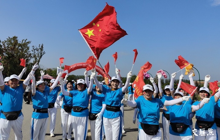 2024年10月1日,沭阳县1万多名群众参加金秋健步览花乡活动,庆祝新中国75周年华诞。丁华明 摄