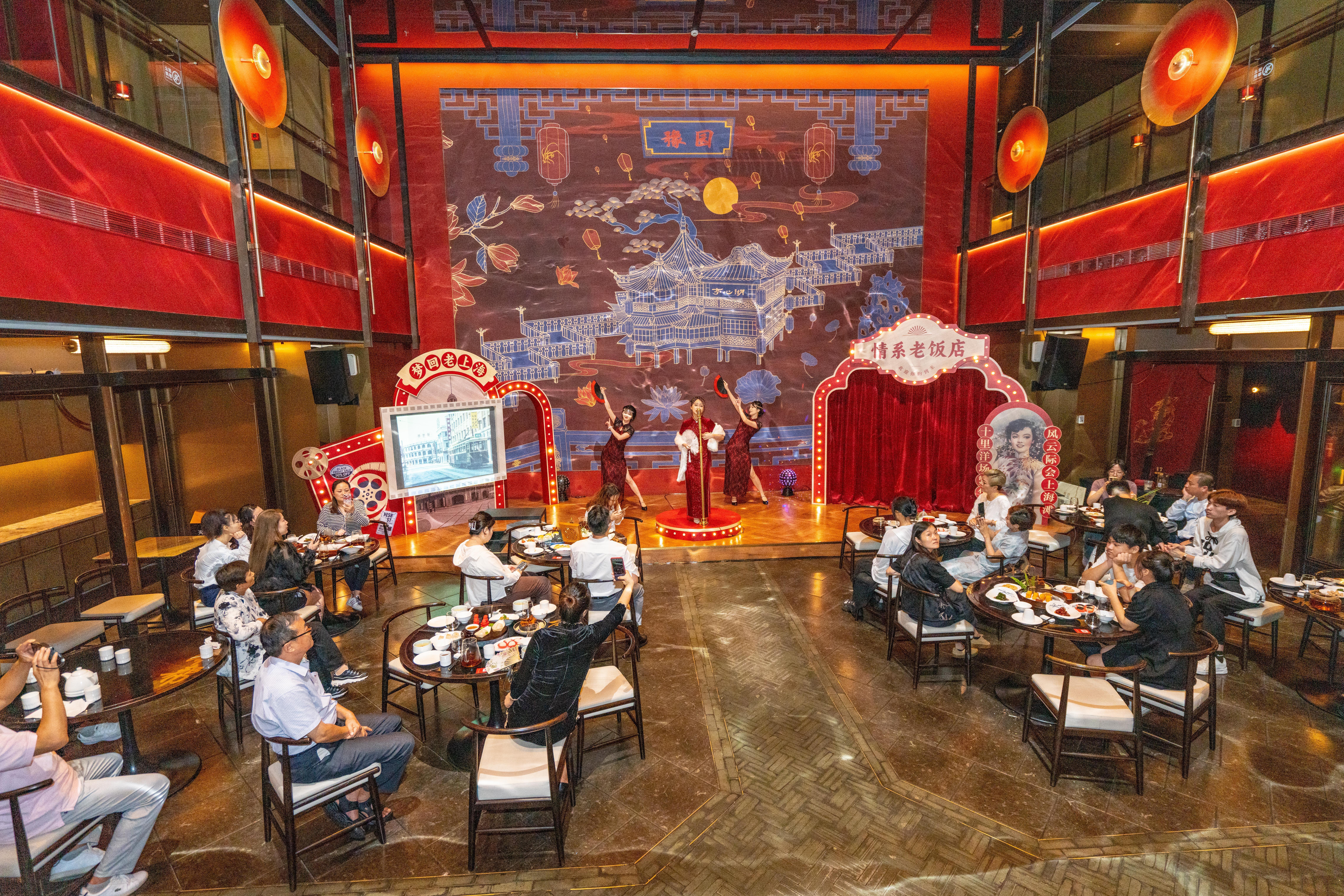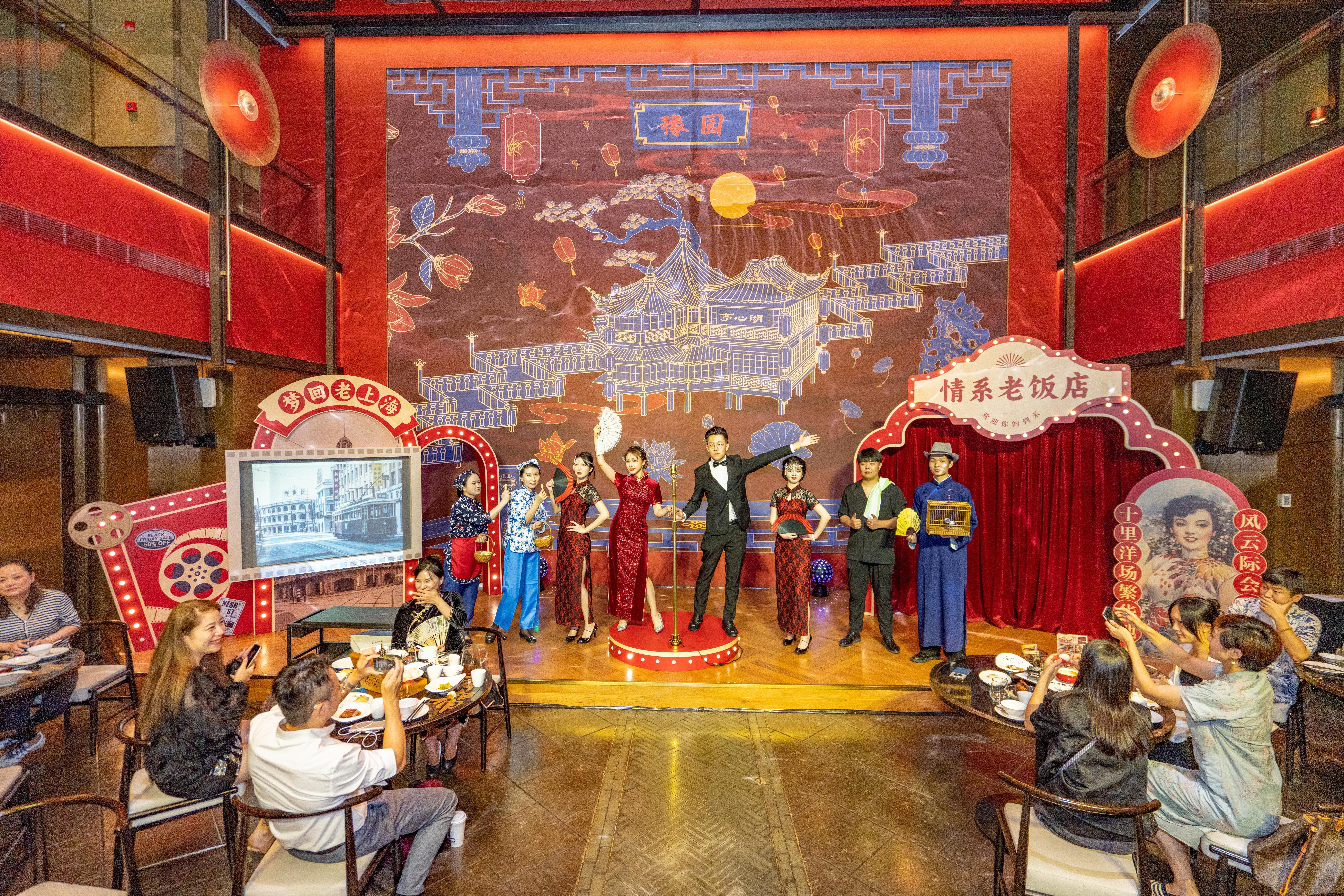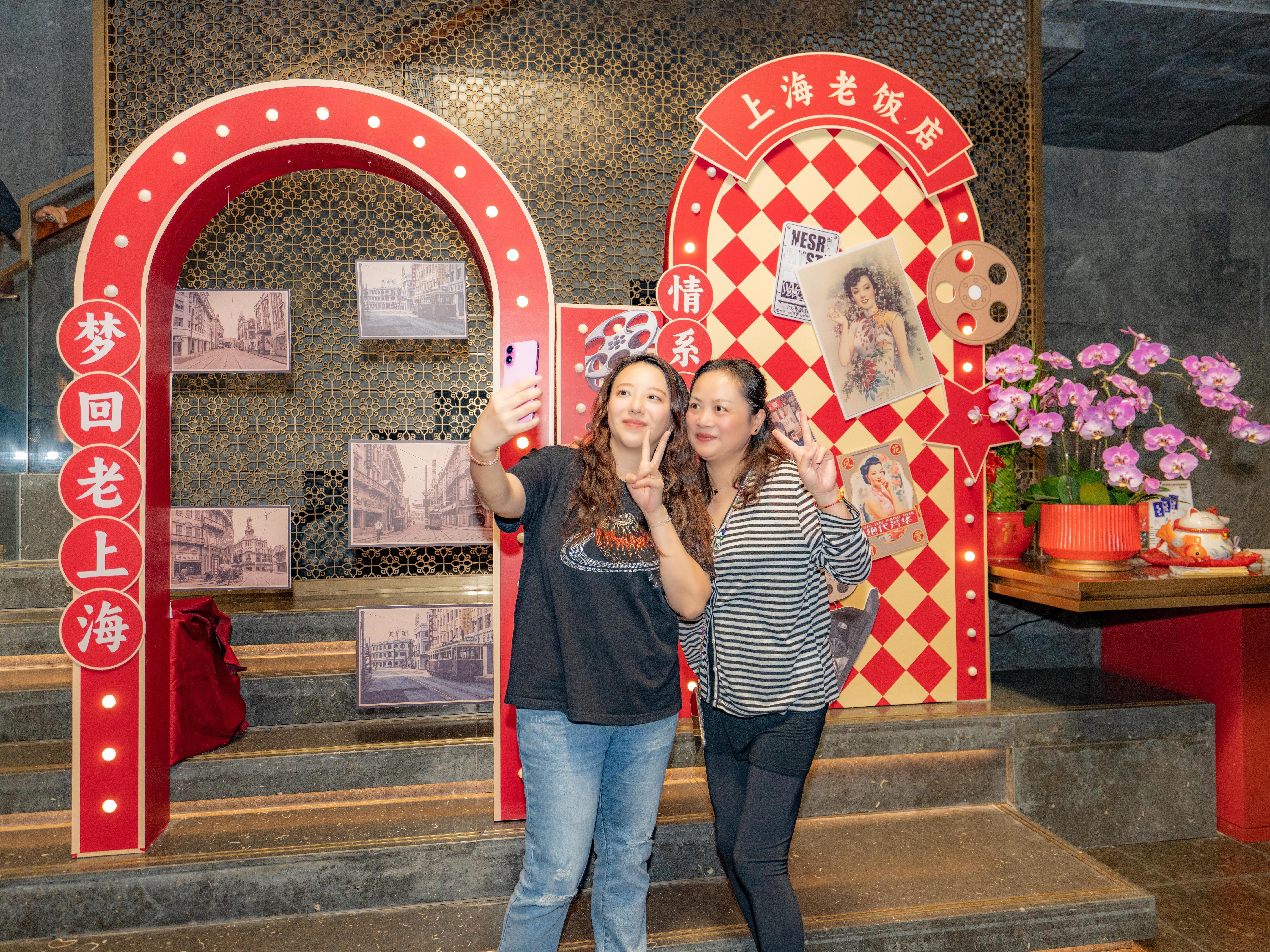 现场,留声机、黄包车、玉兰花等老上海元素随处可见,营造出浓郁的年代感,让食客们仿佛穿越时空,回到了那个风情万种的老上海。精美的食物与独特的氛围让食客们忙得不亦乐乎,纷纷拍照留念,感叹不已。