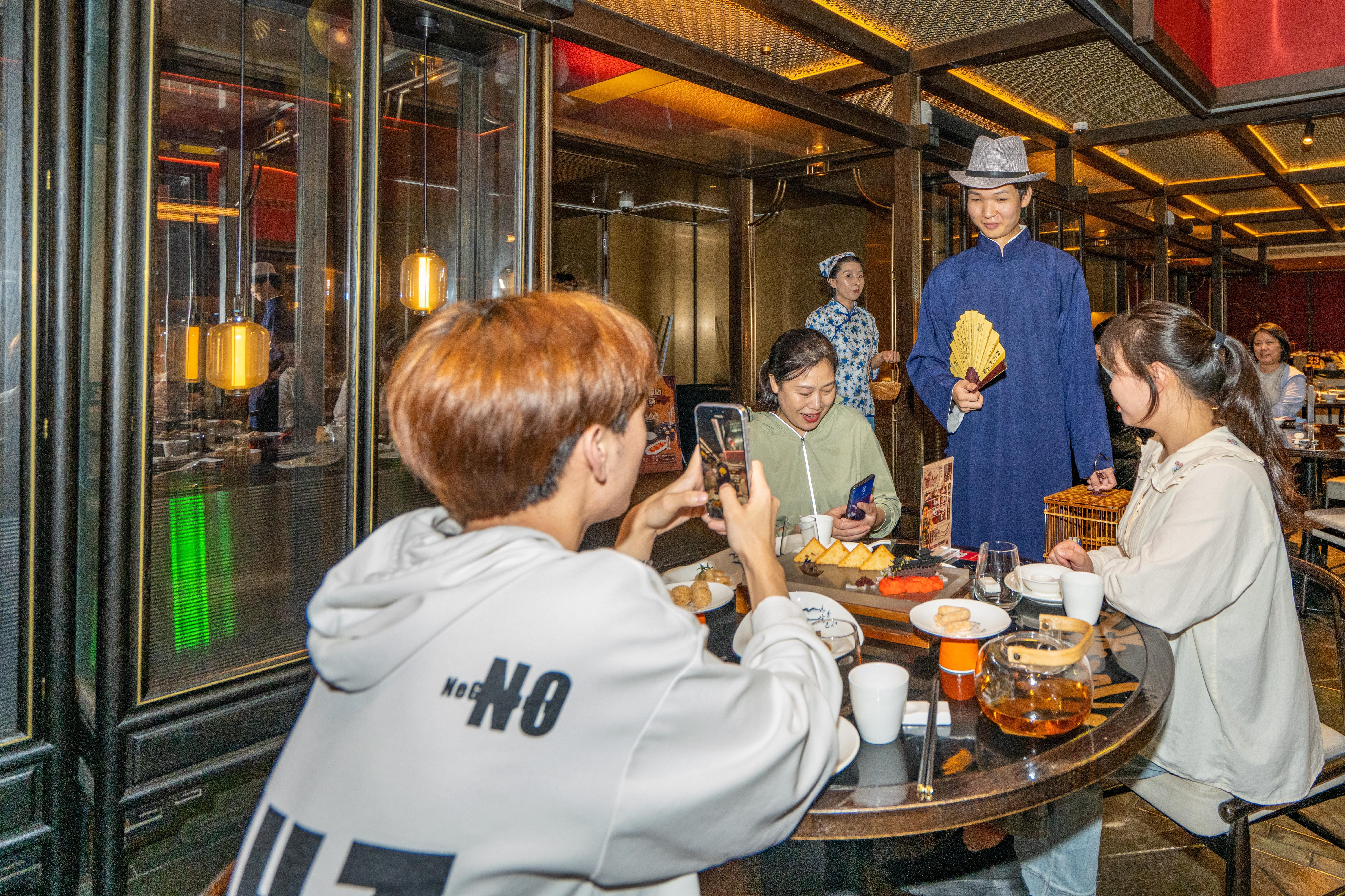 “这次下午茶的体验非常棒,点心精致且味道好,老上海风格的表演也十分配合场景,非常适合带家人一起来享受。我点了‘秋涛糖糕’和‘蒹葭乳鸽’,做的非常精致,既是艺术品也是美食,让我印象深刻。”游客刘先生说。