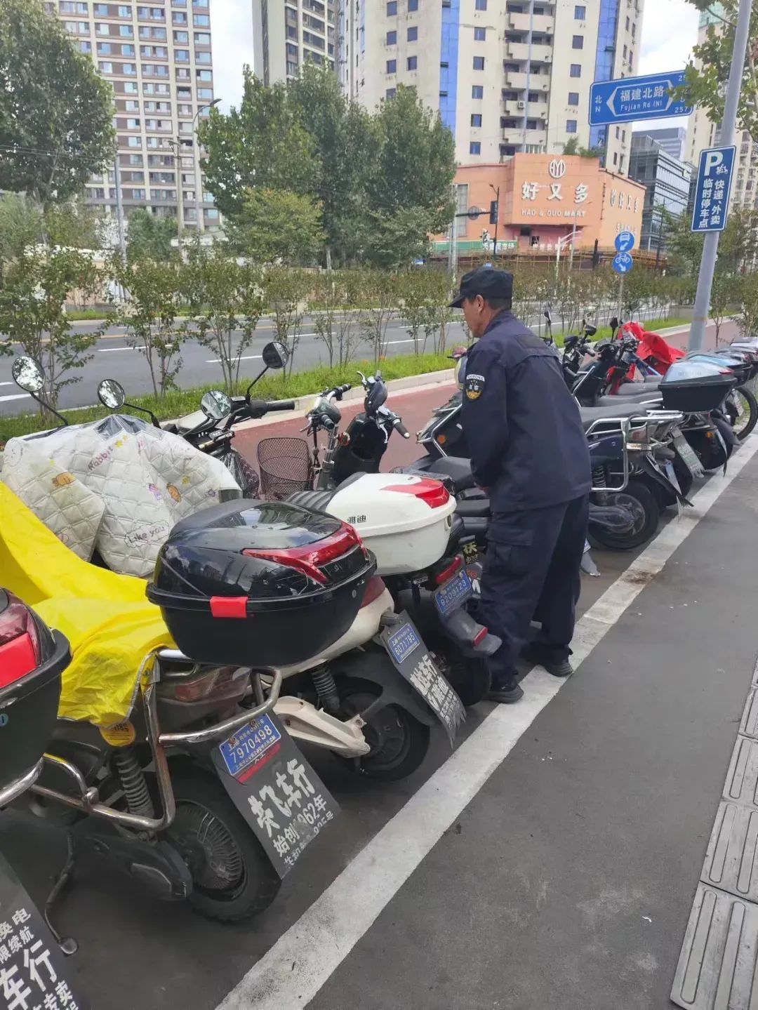 苏河湾万象天地周边是快递外卖车辆聚集区,街道牵头交警部门和商场物业管理方,实地考察研究快递外卖小哥的习惯动线、征询快递外卖小哥意见后,在苏河湾万象天地周边(福建北路/天潼路、天潼路中段、浙江路/天潼路)规划了3个快递外卖临时停车点,引导快递外卖小哥在固定点位临时停车,提高了配送效率,也破解了“商圈拥堵”难题。此外,商场内部还增设了“外卖临时存放点”,缓解高峰时段外卖小哥单量大、时间紧的问题。
