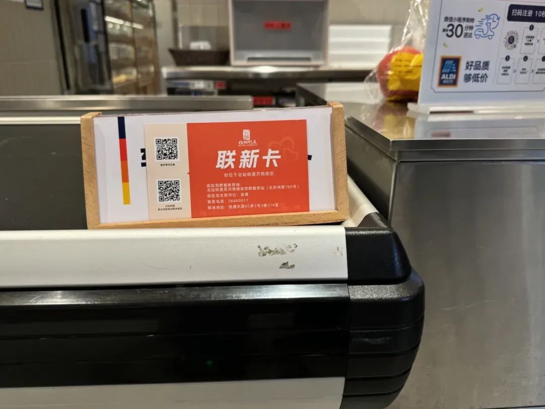 为更好地联系和服务新就业群体,万悦街区党支部联合街道市场所在苏河湾绿地党群服务站及苏河湾万象天地商铺内放置了“联新卡”,联动各职能部门,为新就业群体提供党组织关系转接、户籍服务、治安服务、企业服务、生活服务等一系列“联新”服务。快递外卖小哥在取餐、送餐、送货期间均可自行拿取,并通过“联新卡”与街区党支部取得联系。