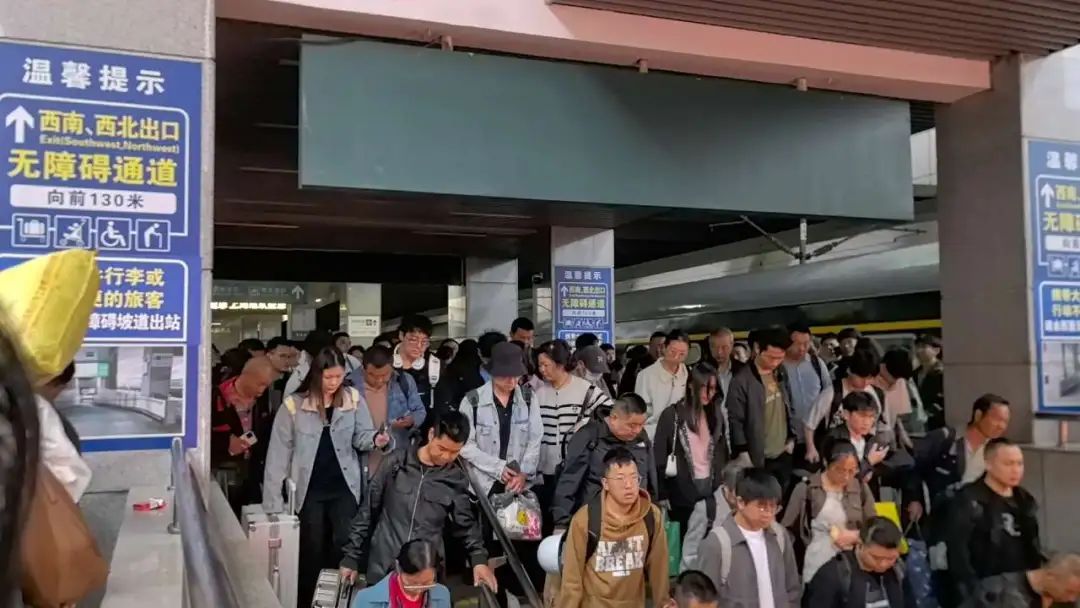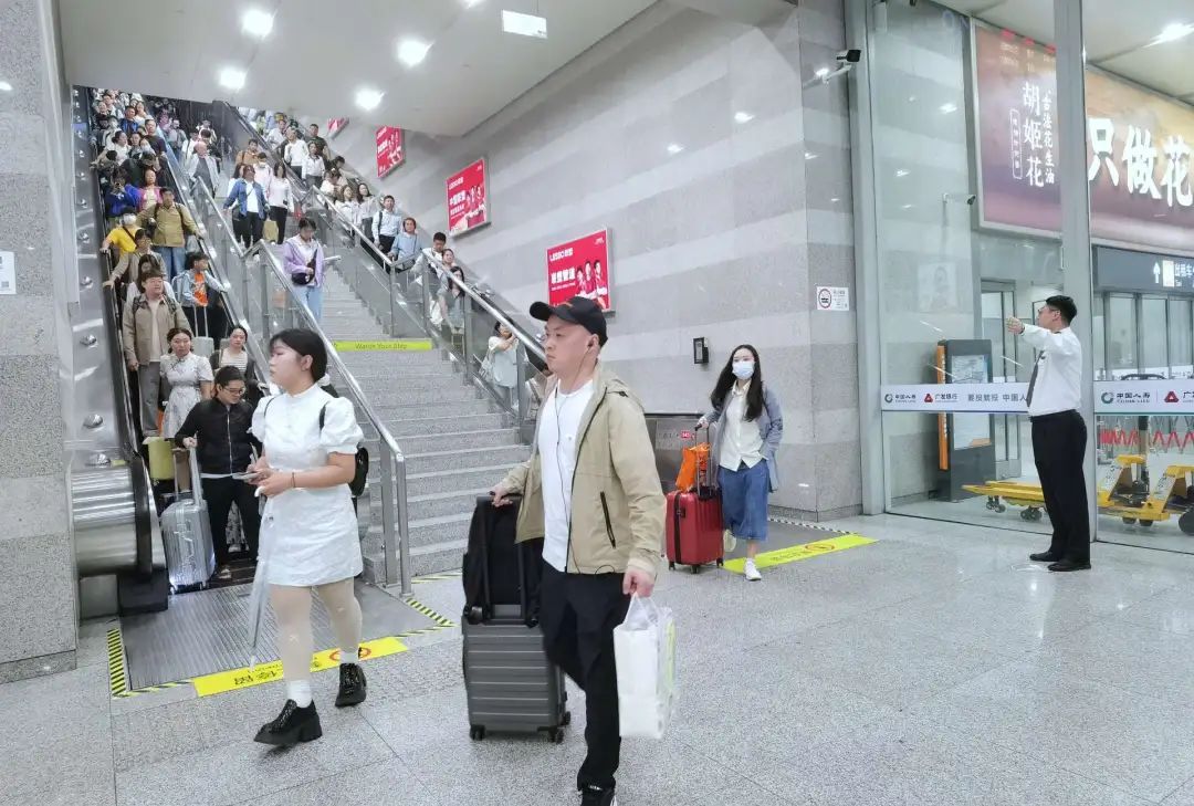 铁路部门提醒旅客,车站客流较大,进出站时请提前准备好乘车证件,听从工作人员引导有序进出车站。站台行走时,请在安全白线内行走,注意脚下安全。