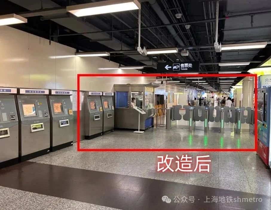 改造完成后,车站对限流栏杆、盲道等配套设施同步调整,在站厅TVM处(近1号口)设置移动限流栏杆,在发生大客流情况时,通过调整闸机出站模式,以及设置移动栏杆,保障客流平稳有序。